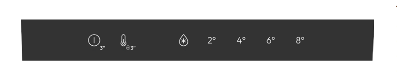 Трехсекундное нажатие на сенсор с символом градусника включает режим быстрого охлаждения, предназначенный для быстрого охлаждения большого объема продуктов. В этом режиме холодильник работает на максимальной мощности в течение 30 часов, после чего возвращается к ранее установленной температуре.