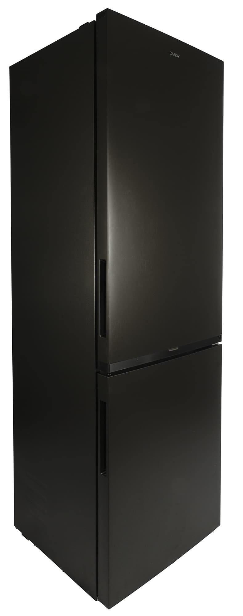 Холодильник оформлен в темно-серой гамме: матовые дверцы и стенки цвета «черный обсидиан» отлично впишутся в любой интерьер. Производитель также предлагает эту модель в черном, золотистом, бежевом, серебристом и традиционном белом вариантах исполнения. Дизайн прибора строг и аскетичен: никаких украшений, кроме логотипа Candy, на дверцах нет, индикаторы и элементы управления убраны внутрь холодильной камеры.