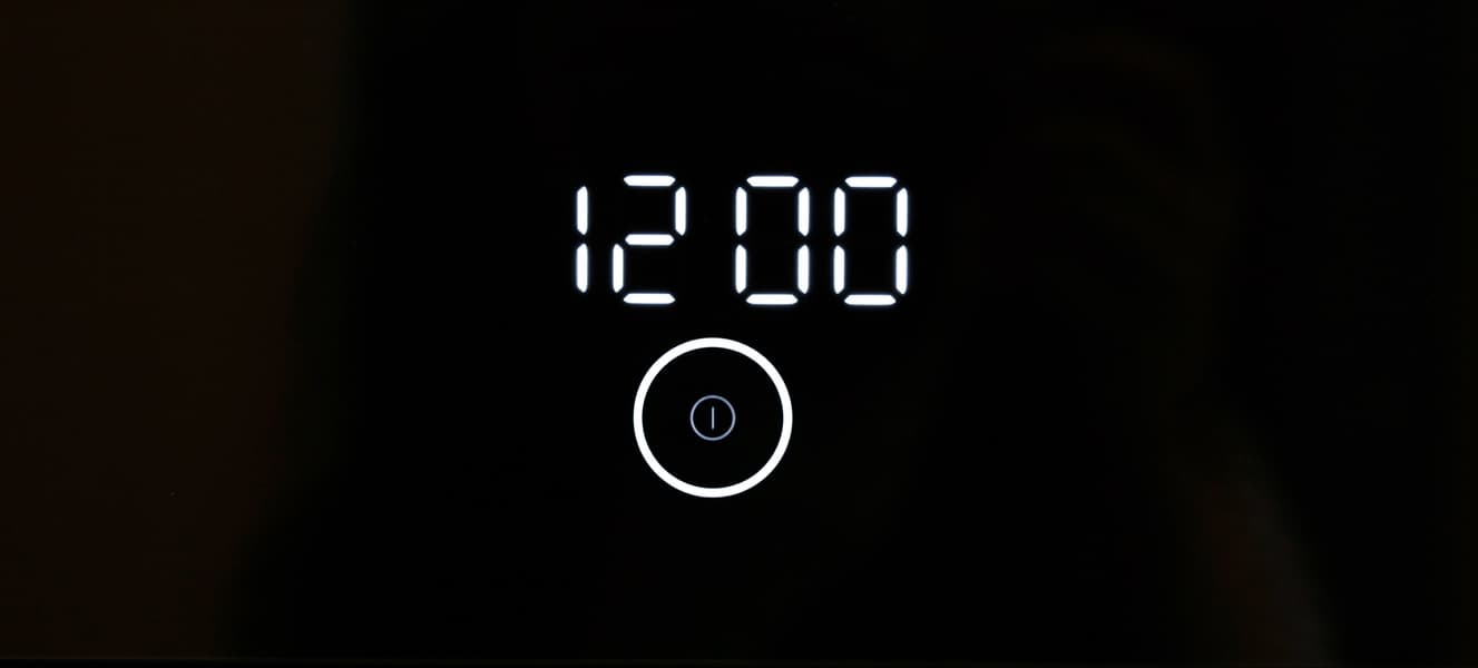 Для начала работы нужно установить часы или хотя бы подтвердить мигающие по умолчанию 12:00. Чтобы активировать весь сенсорный ряд, нужно нажать на крупную кнопку включения по центру.