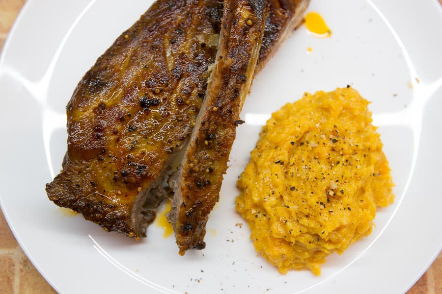 Мясо получилось сочным, а тыквенное пюре — невероятно вкусным и ароматным.