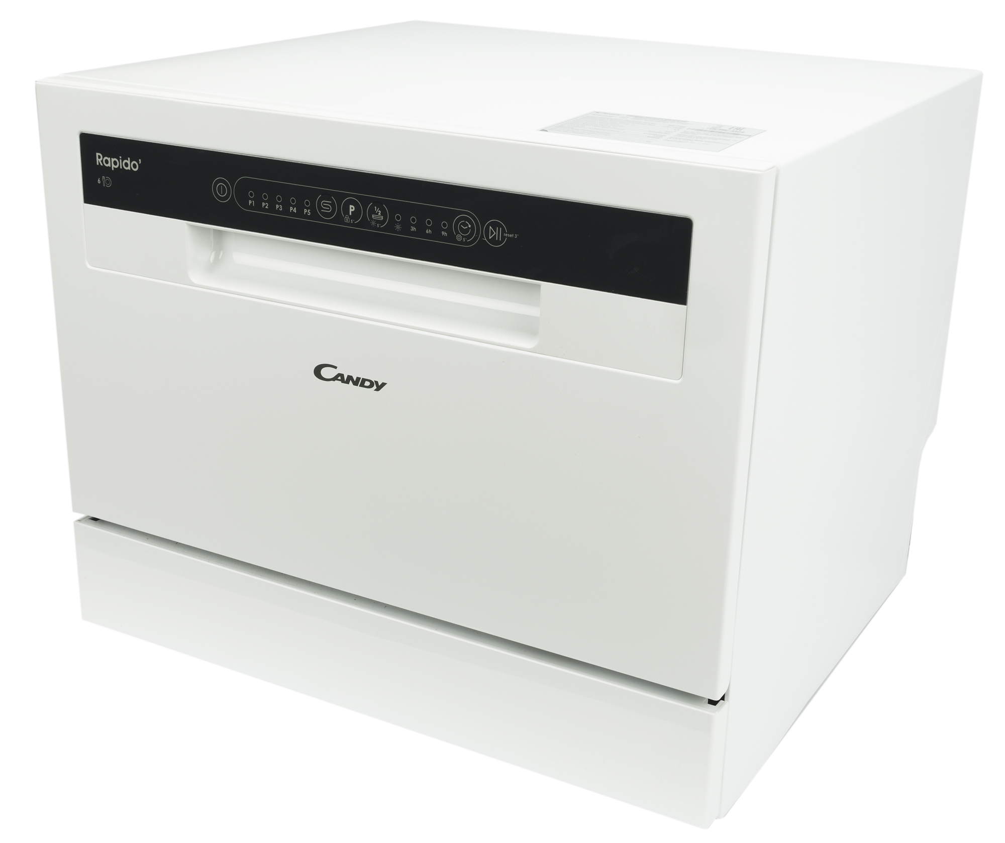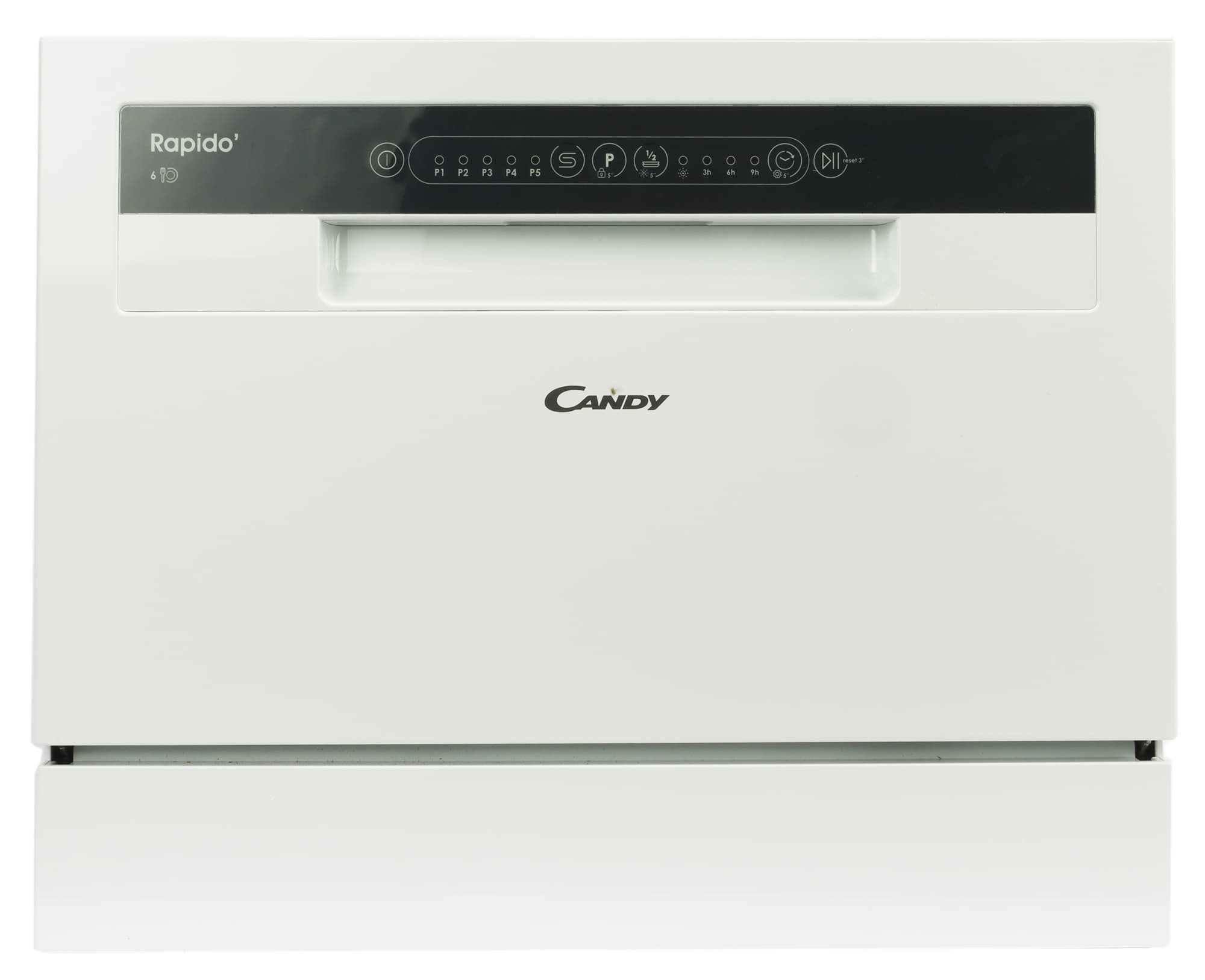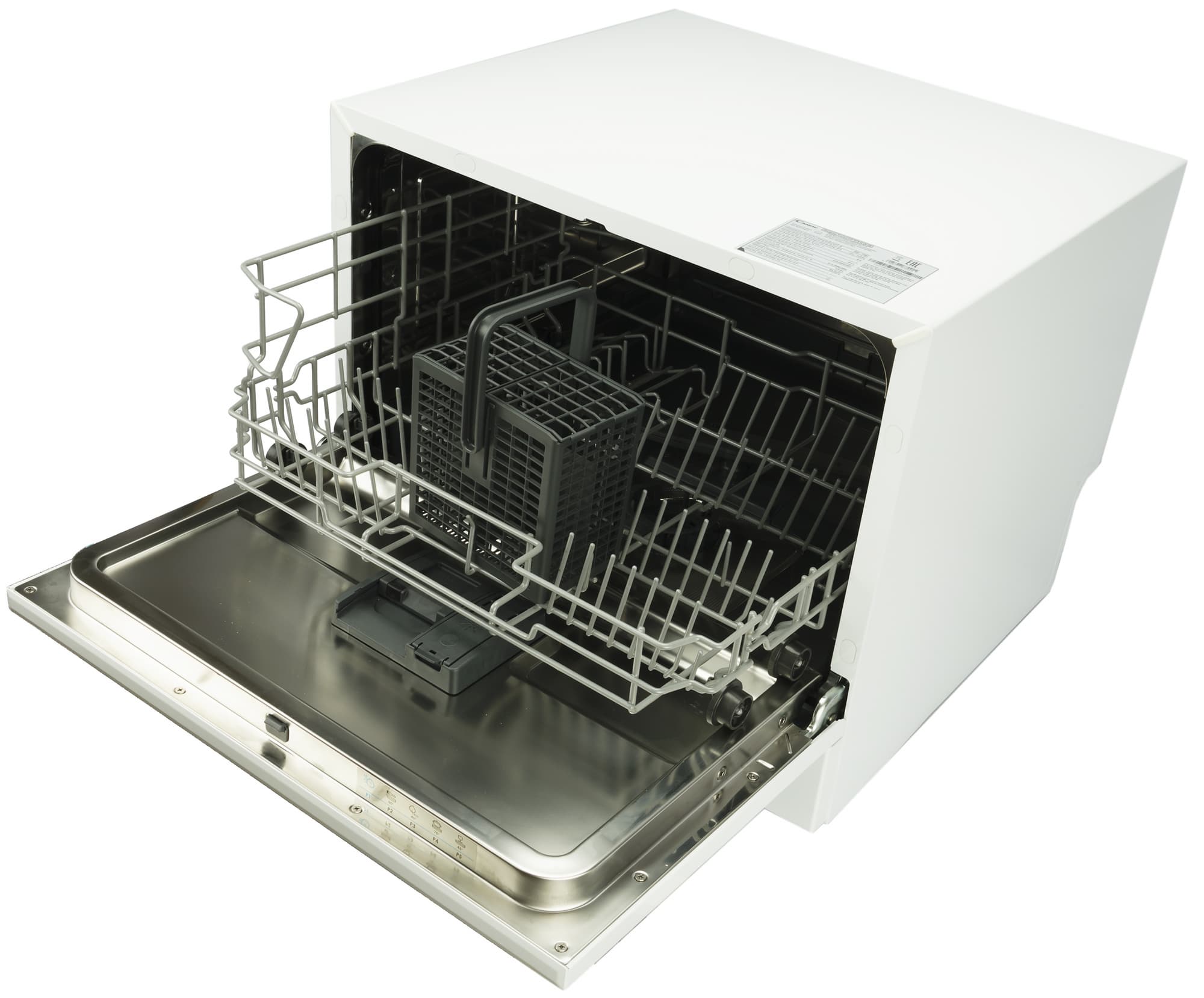 Эта симпатичная небольшая посудомойка легко поместится на стандартную кухонную столешницу и не займет много места. Вместимость при этом у прибора вполне приличная — целых 6 комплектов посуды. Во всяком случае, так обещает производитель. Модель оснащена 5 автопрограммами с возможностью частичной загрузки, таймером с отложенным стартом, функциями блокировки, паузы и запоминания, а также индикаторами соли и ополаскивателя. Похоже, что несмотря на компактность это полноценный прибор для мытья посуды со всеми необходимыми опциями. Мы проведем ряд стандартных тестов и выясним, насколько хорошо он справляется с разного рода загрязнениями и насколько удобен в использовании.