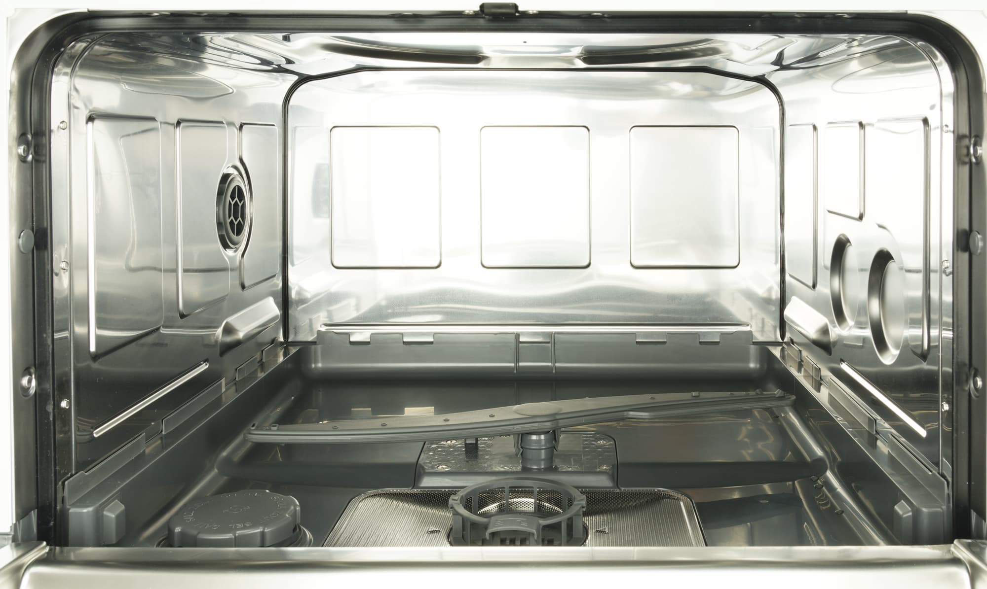 Стенки и потолок камеры посудомойки выполнены из нержавеющей стали, а поддон — из пластика.