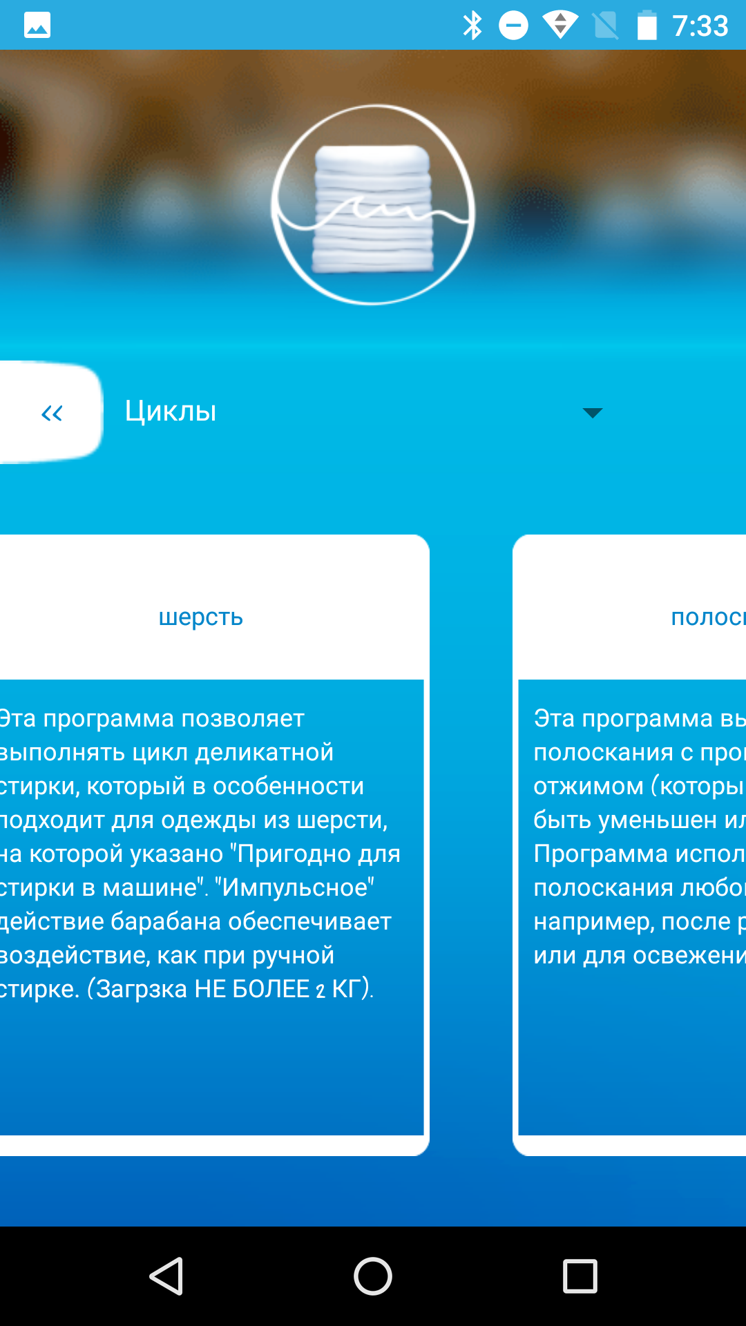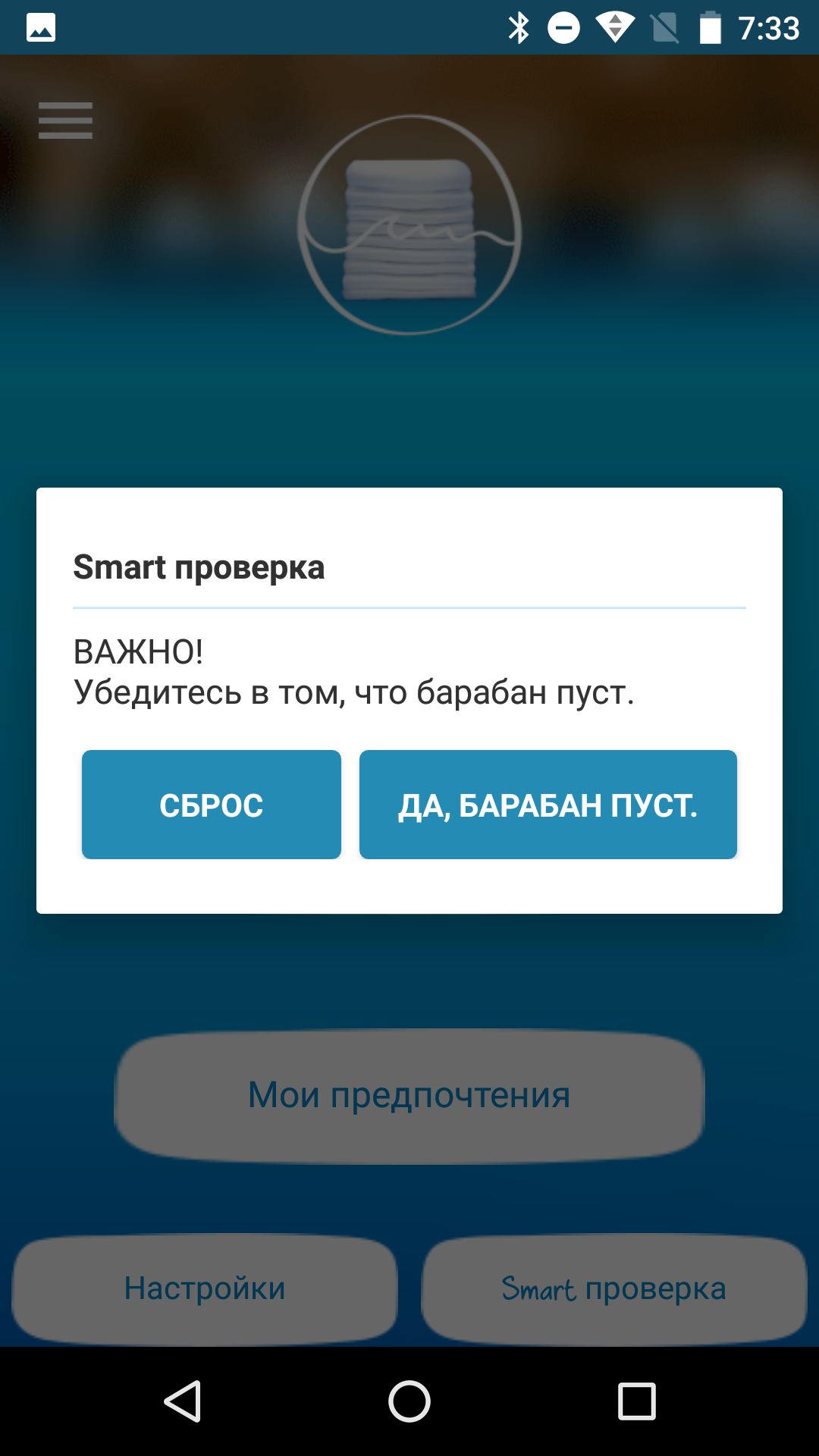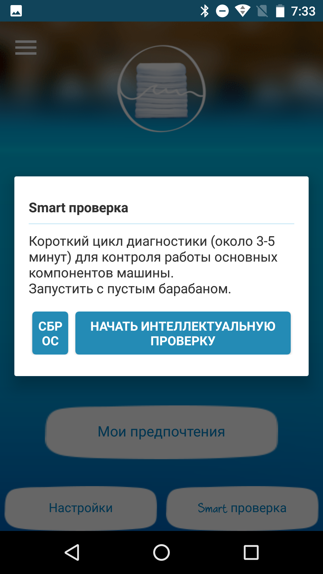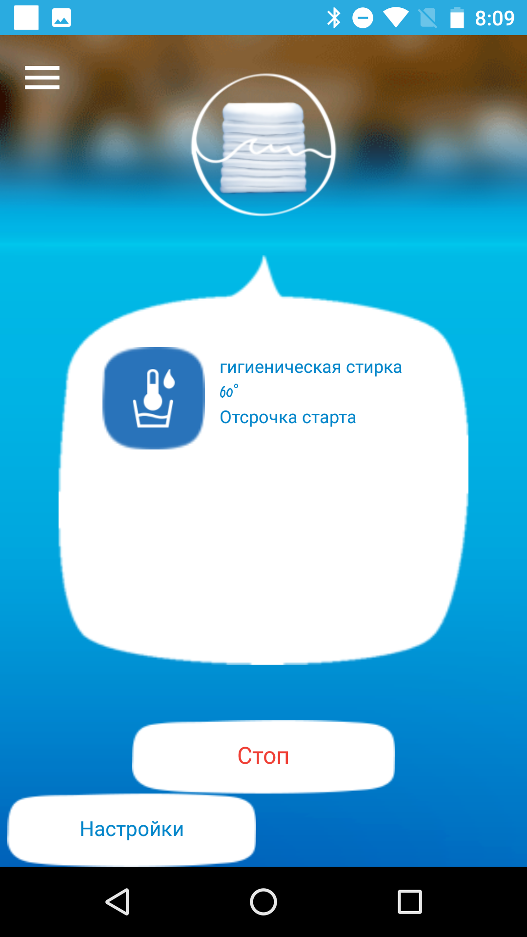 Во время стирки приложение информирует о ходе процесса, а когда она кончится, отправляет стандартное системное уведомление.