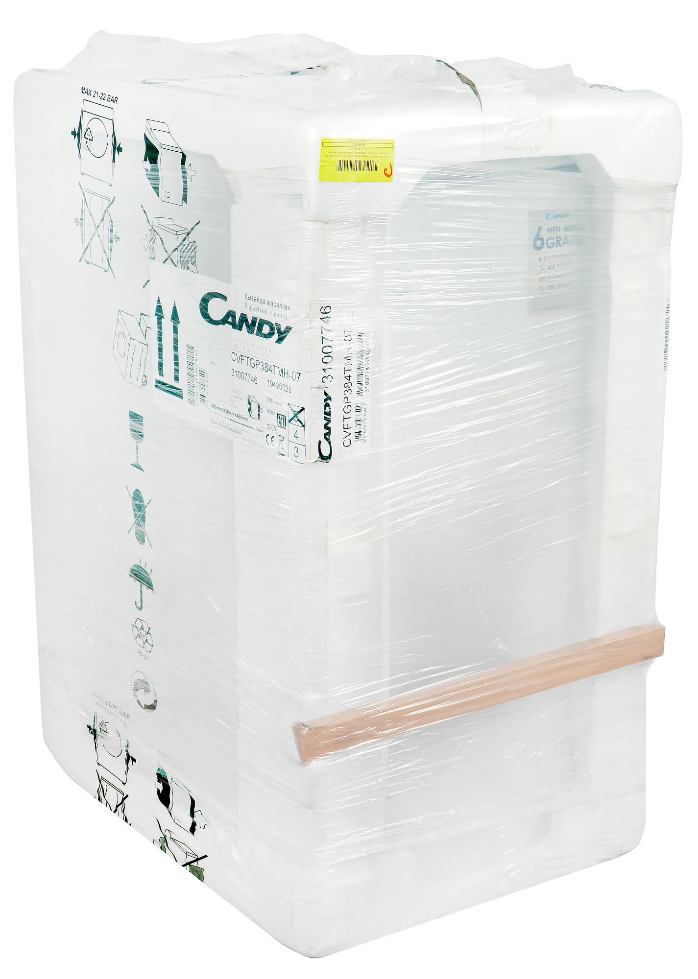 Стиральная машина упакована в пенопласт с деревянными распорками, обеспечивающими жесткость, и обернута в полиэтиленовую пленку. Распаковать ее удалось быстро, а утилизировать мусор — просто.