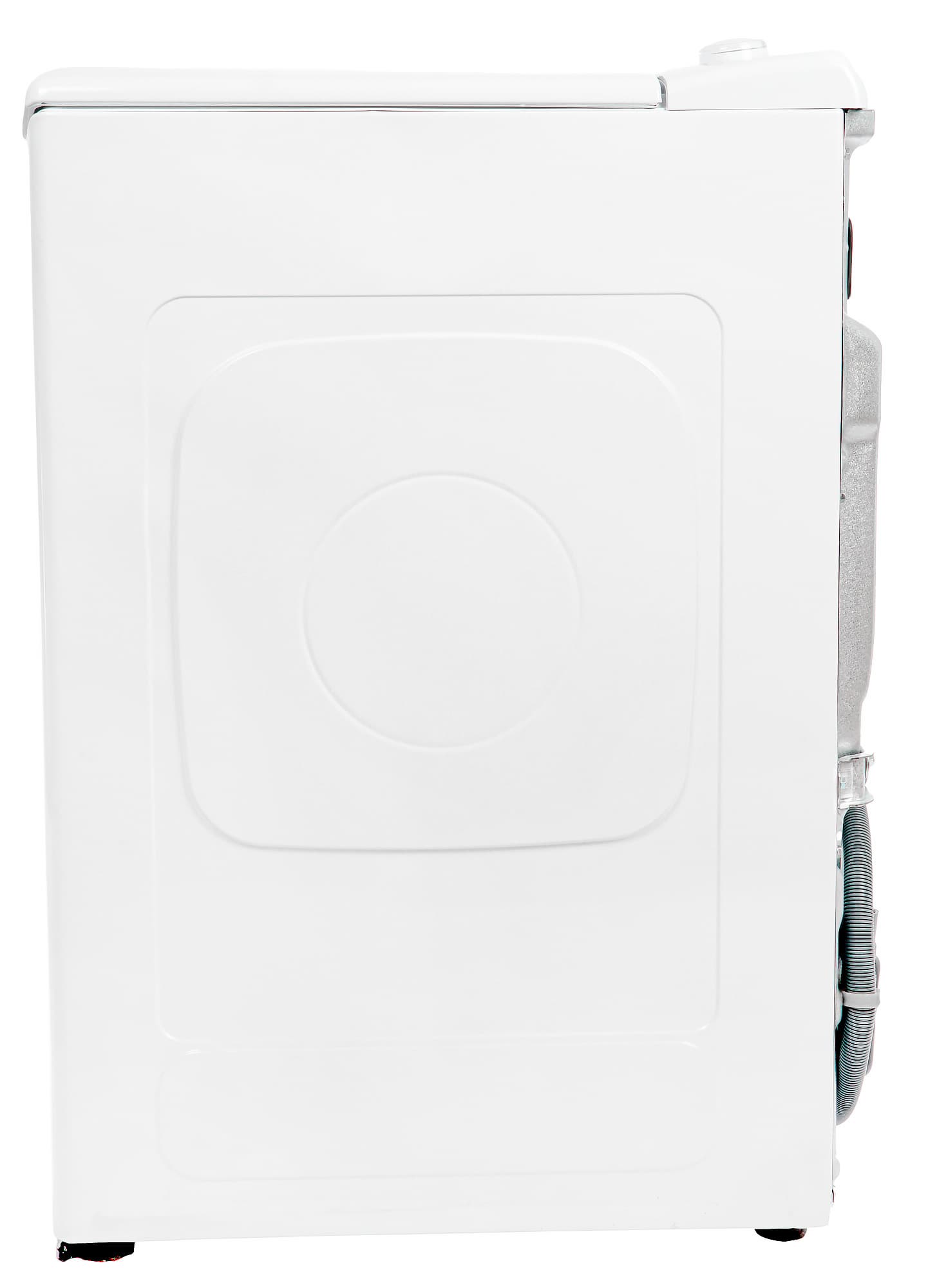 Несъемный гофрированный сливной шланг стандартного типоразмера выходит из нижней части задней панели.