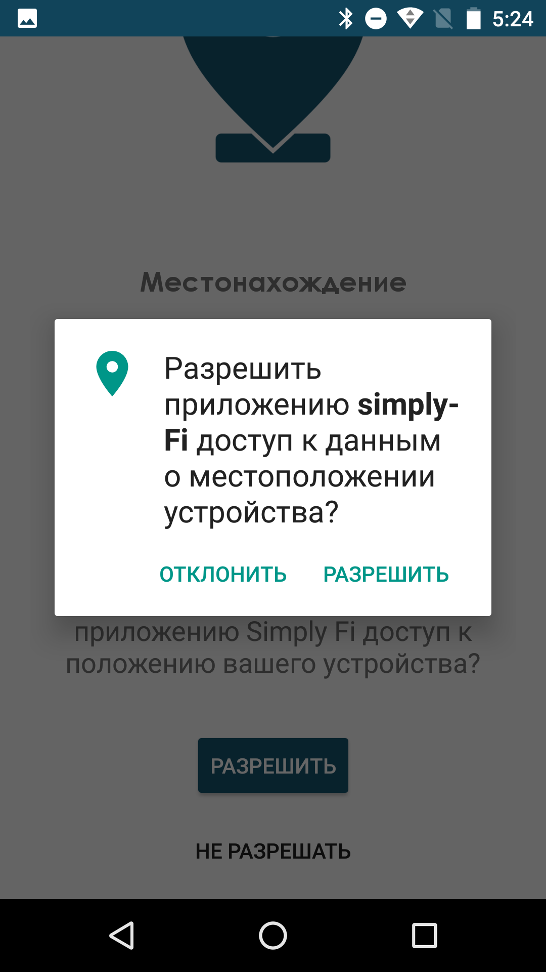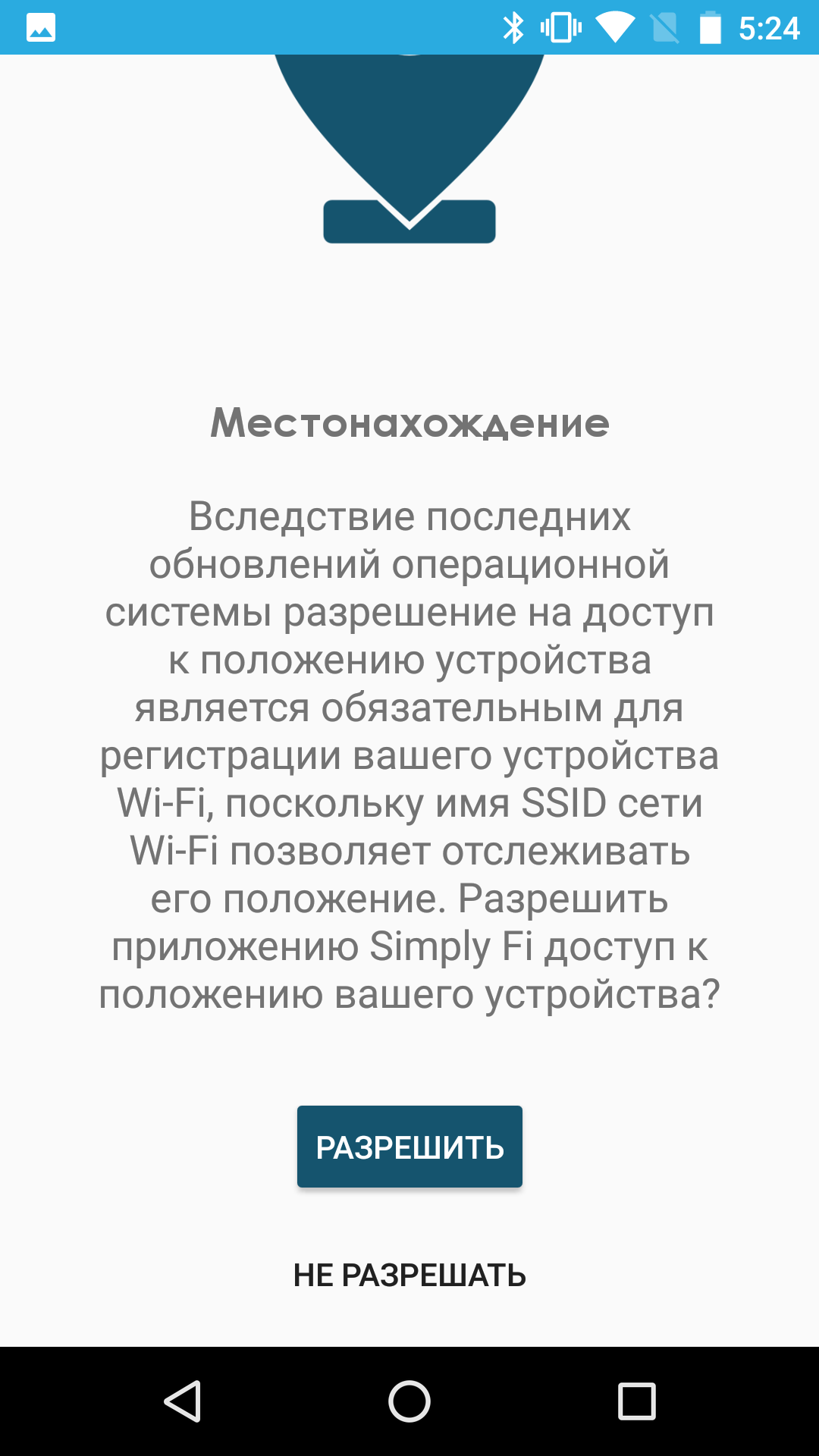 После этого приложение требует доступ к данным о местоположении устройства, о чем любезно предупреждает заранее.