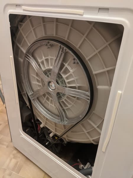 Как обычно, мы произвели неполную разборку стиральной машины и заглянули внутрь, чтобы оценить расположение и исполнение основных компонентов.