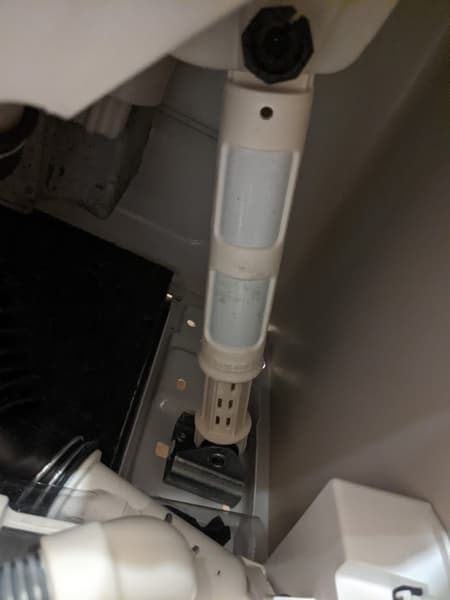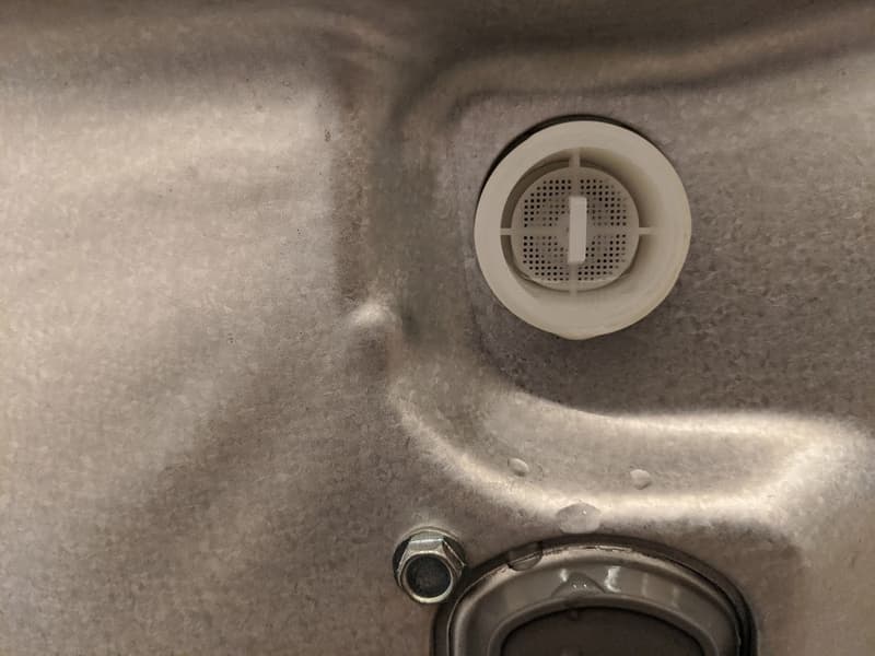 Периодичность очистки сливного фильтра производителем не регламентируется. Для этой процедуры следует открыть лючок на передней панели устройства (заметим, что открывается он с некоторым трудом, и приходится применять твердый тонкий предмет: нож, отвертку или черенок чайной ложки), отвинтить пробку (рекомендуется подложить под нее кусок впитывающей воду ткани, чтобы сохранить пол сухим), вынуть и промыть фильтр.