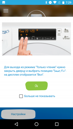 К сожалению, несмотря на необходимость подключения устройства к интернету, приложение работает только в том случае, если пользователь находится в одной сети со стиральной машиной. Воспользоваться функцией включения нужной программы на расстоянии или хотя бы получить уведомление об окончании стирки в гостях или в магазине, увы, невозможно.