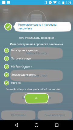 Функция «Smart проверка» позволяет провести четырехминутный тест работы блокировки дверцы, электродвигателя, тэна и других систем устройства. Для включения в этом режиме барабан должен быть пуст, а его крышка закрыта.