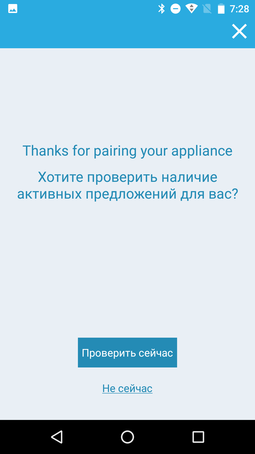 После этого мы убеждаемся, что никаких активных предложений по изделию в настоящий момент нет, и видим, что стиральная машина появилась в списке наших приборов.