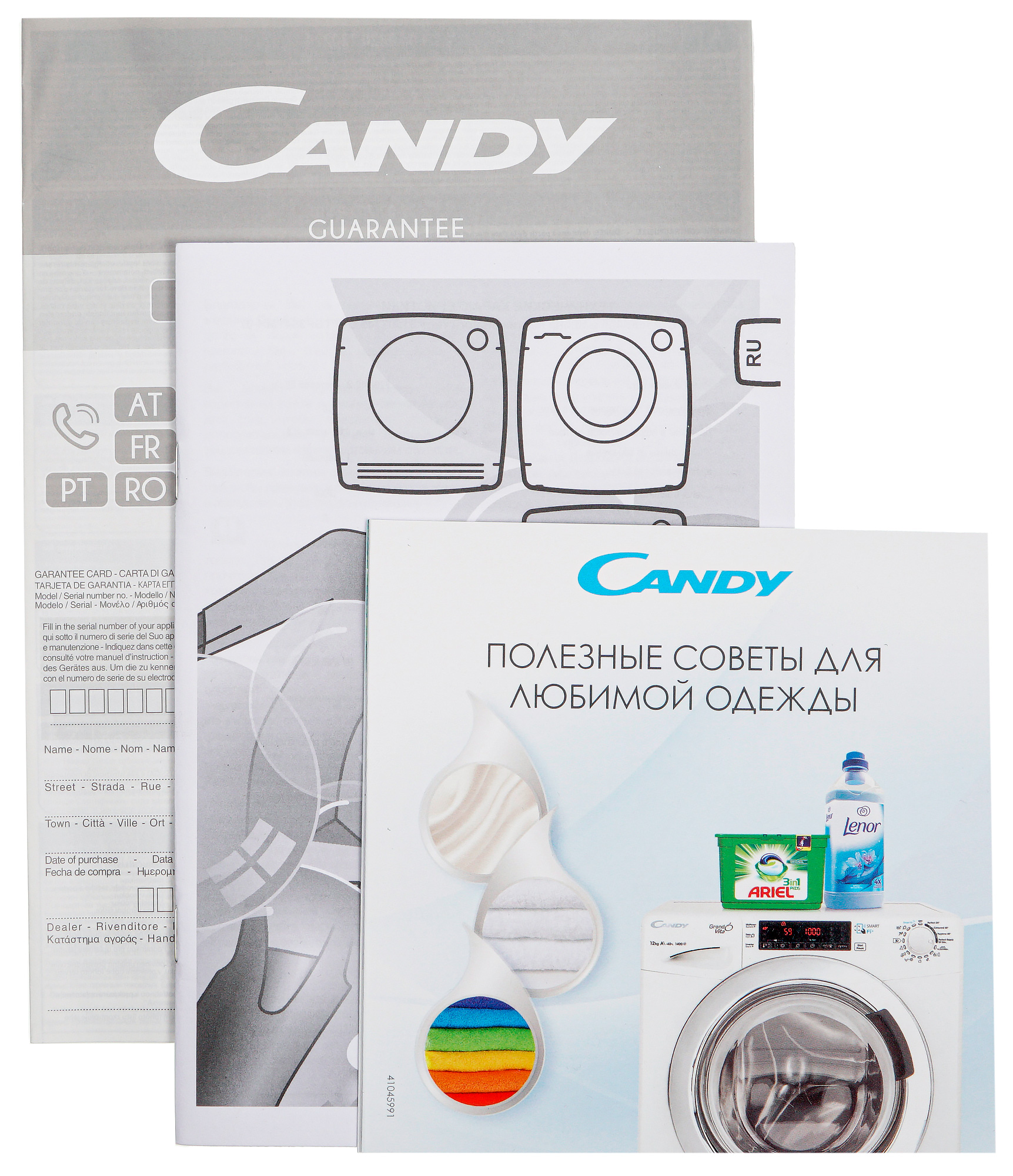 В комплект также входят гарантийная книжка и брошюра полезных советов для эффективной и бережной стирки белья.