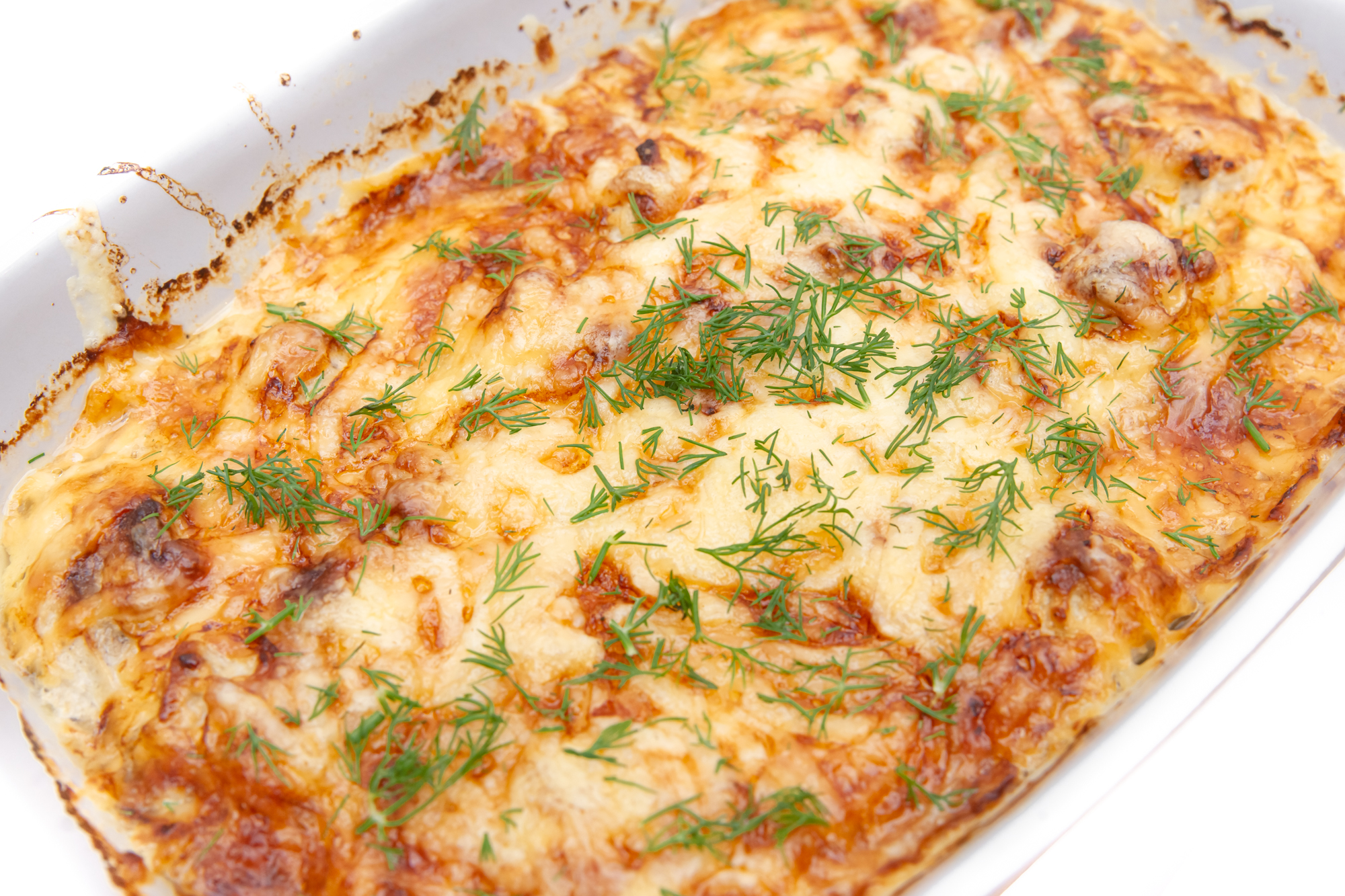 Результат нас порадовал. Сырная корочка, покрывающая сочную индейку, подрумянилась и запеклась должным образом. Картофель за это время пропекся равномерно, сырого не осталось, успел покрыться хрустящей корочкой, но не весь — картофелины, лежавшие ближе к дверце, были бледнее. Впрочем, это никак не сказалось на вкусе блюда в целом.