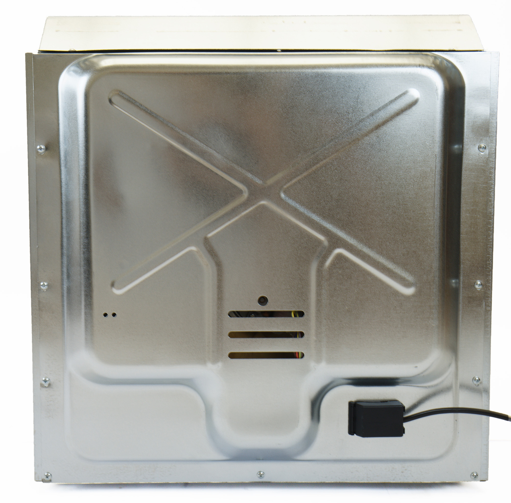 На задней стенке находится шнур подключения. В комплекте не предусмотрена вилка, ее необходимо приобрести и установить отдельно. Ручек для удобства переноски духовки мы не нашли.