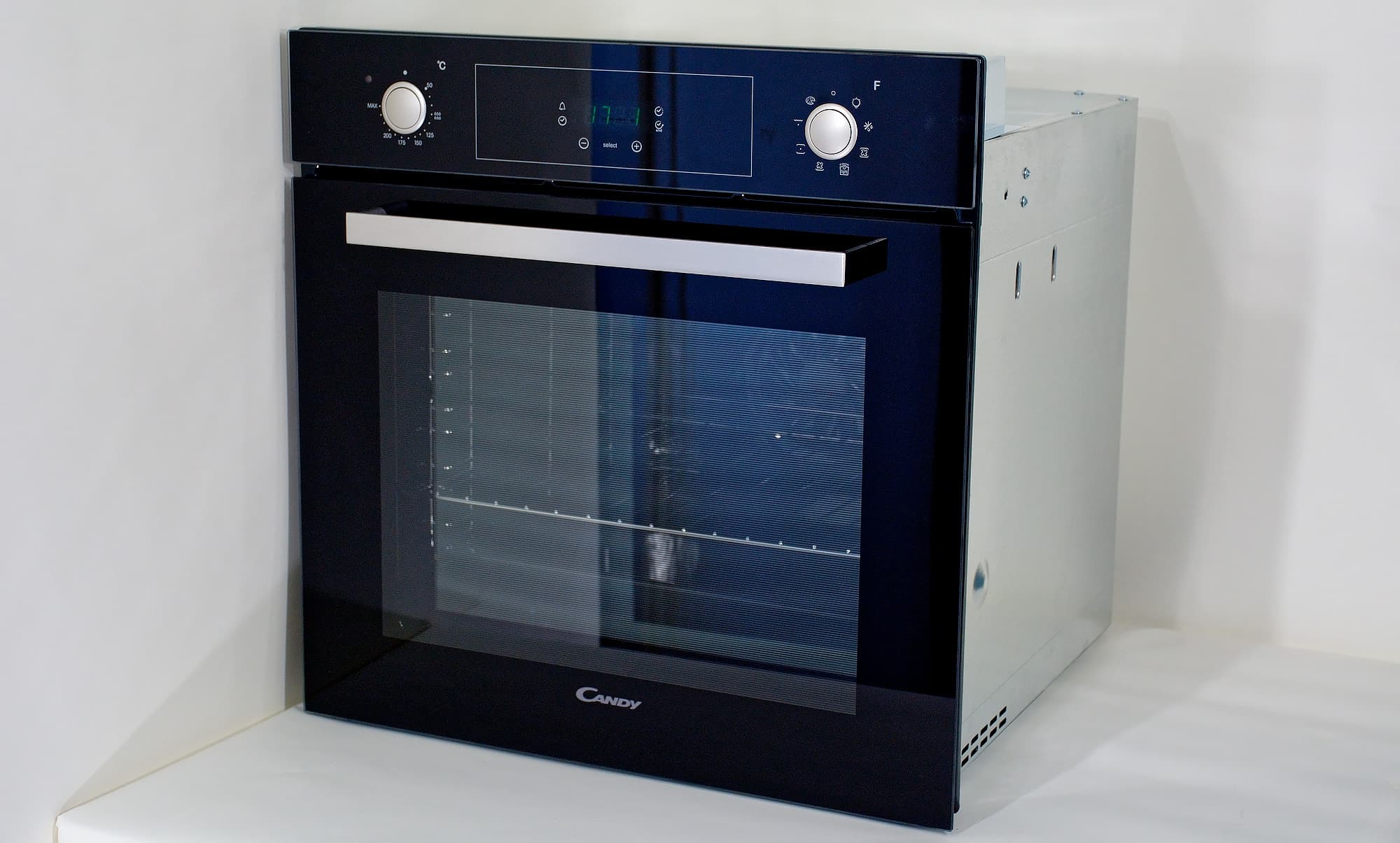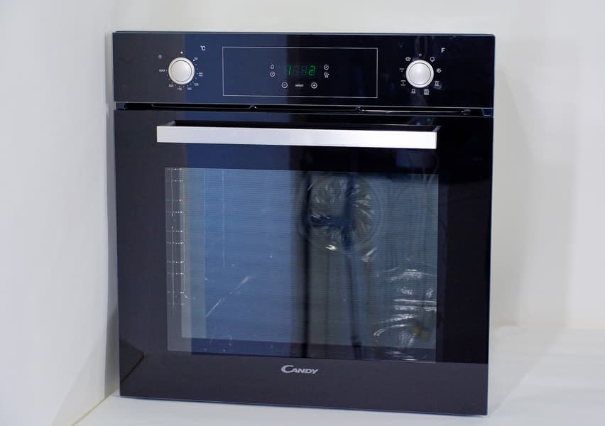 Вот мы и добрались до тестирования встраиваемых духовок. Наша первая гостья на этом поприще — электрическая духовка Candy FCP615NXL. Прибор имеет самый популярный и распространенный на рынке размер и литраж, снабжен одним противнем и решеткой. Помимо верхнего и нижнего нагрева, здесь есть гриль и конвекция, металлические направляющие, таймер с сенсорной панелью и утапливаемые ручки управления.