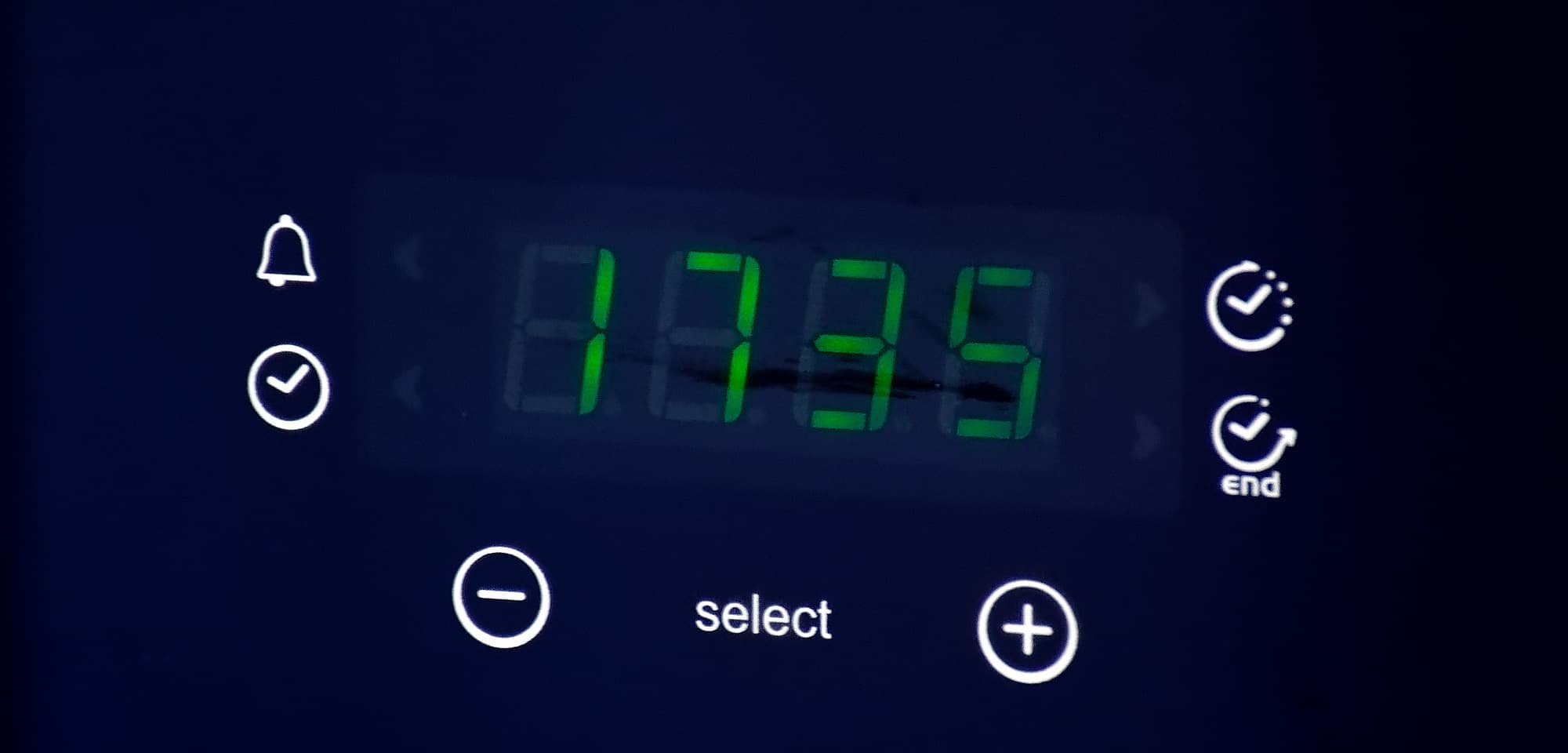 Средняя часть панели управления — электронная и посвящена таймеру. С сенсорным управлением можно разобраться интуитивно. Здесь сосредоточены следующие функции: духовку можно заблокировать от детей, можно использовать духовку как часы и даже как будильник, завести простой таймер, который напомнит вам о вашей духовке в заданное время, а также задать таймер, который отключит нагрев через определенное время приготовления либо в определенное время. То есть, например, «через два часа» или «в пять утра».