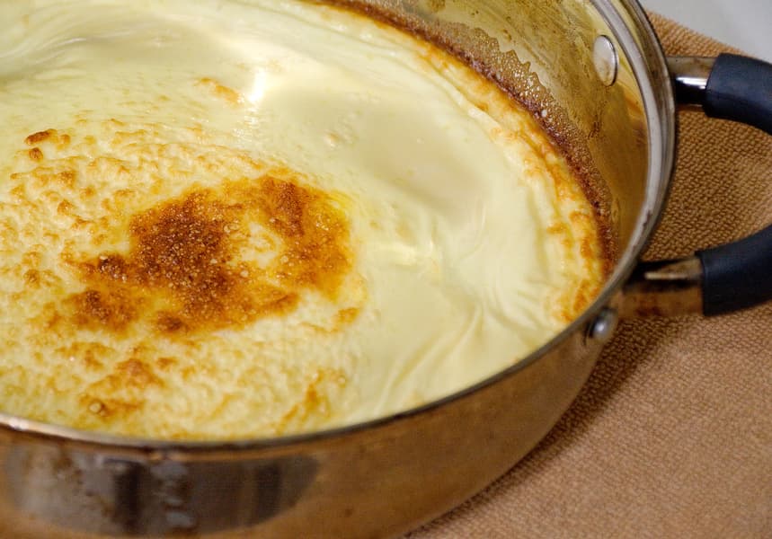 Мы взбили миксером четыре яйца и кружку молока, добавив немного соли. Сковородку смазали маслом и поставили в духовку на деление, соответствующее примерно 160 градусам с конвекцией.