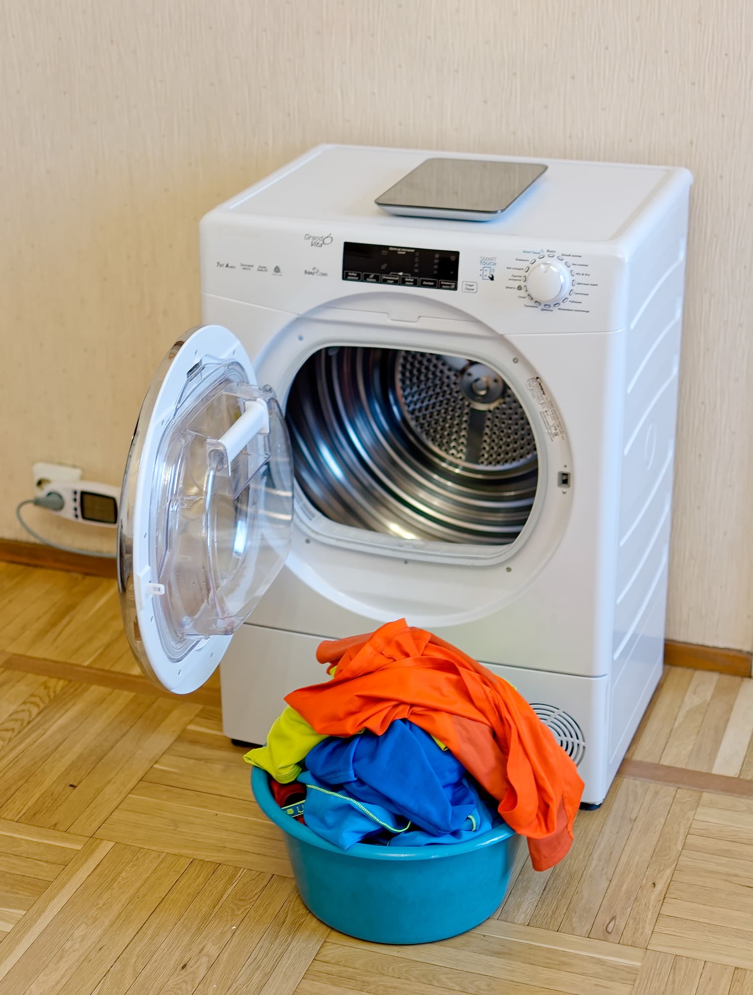 Забавно, что обратный отсчет времени ведет себя порой непредсказуемо. Так, например, он может внезапно сократить прогноз даже на час с небольшим. А иногда такие корректировки вносятся в процессе исполнения программы по нескольку раз. Бывает и обратная ситуация: однажды сушилка демонстрировала нам «2 минуты до конца работы» 6 с лишним минут подряд. В Candy нам объяснили, что сначала устанавливается некое максимально возможное время для данной программы, а потом оно корректируется с учетом показаний датчика влажности.