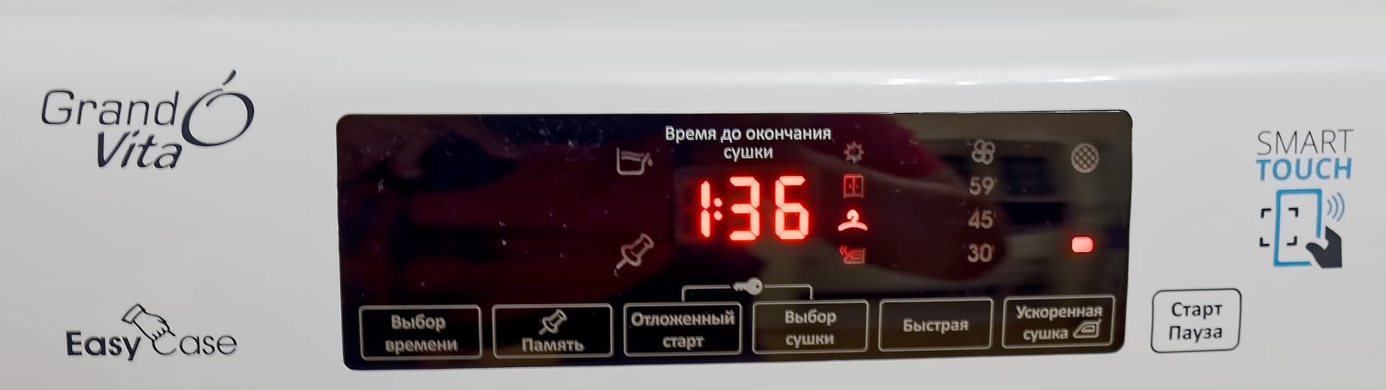 Левая сторона никаких управляющих функций не несет, а просто сообщает нам о том, какая прекрасная и вместительная сушильная машина нам досталась.