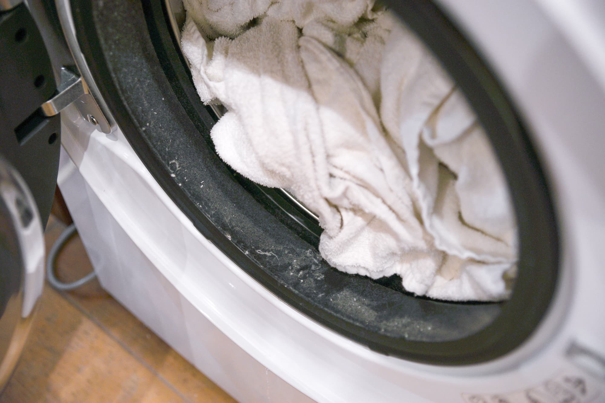 Также нас заинтересовала реальная эффективность отжима, которую мы измеряем в граммах воды на грамм хлопка по формуле: (вес отжатого − сухой вес) / сухой вес. В качестве эталонного белья использовались 10 махровых белых полотенец общим весом 2025 г.