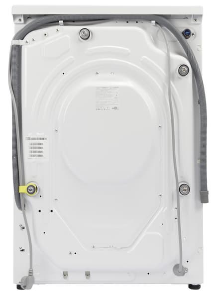 Гофрированный сливной шланг уже установлен на стиральную машину. Заливной же привинчивается к водорозетке в верхнем правом углу задней панели. Эта модель подключается только к холодной воде.