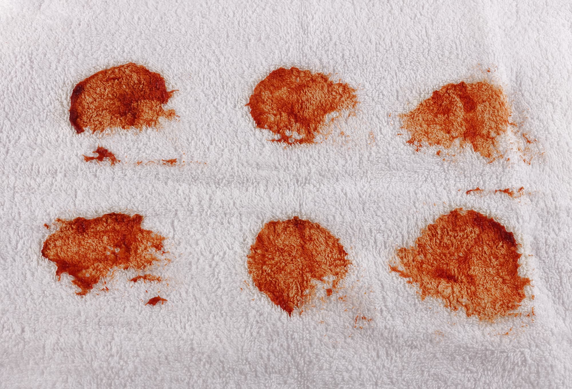 На комплект из шести полотенец мы нанесли красное вино, соевый соус, кетчуп, растительное масло, кровь и какао (на каждом полотенце свое вещество). Загрязнения были высушены при комнатной температуре в течение суток, после чего мы загрузили тестовую стирку.