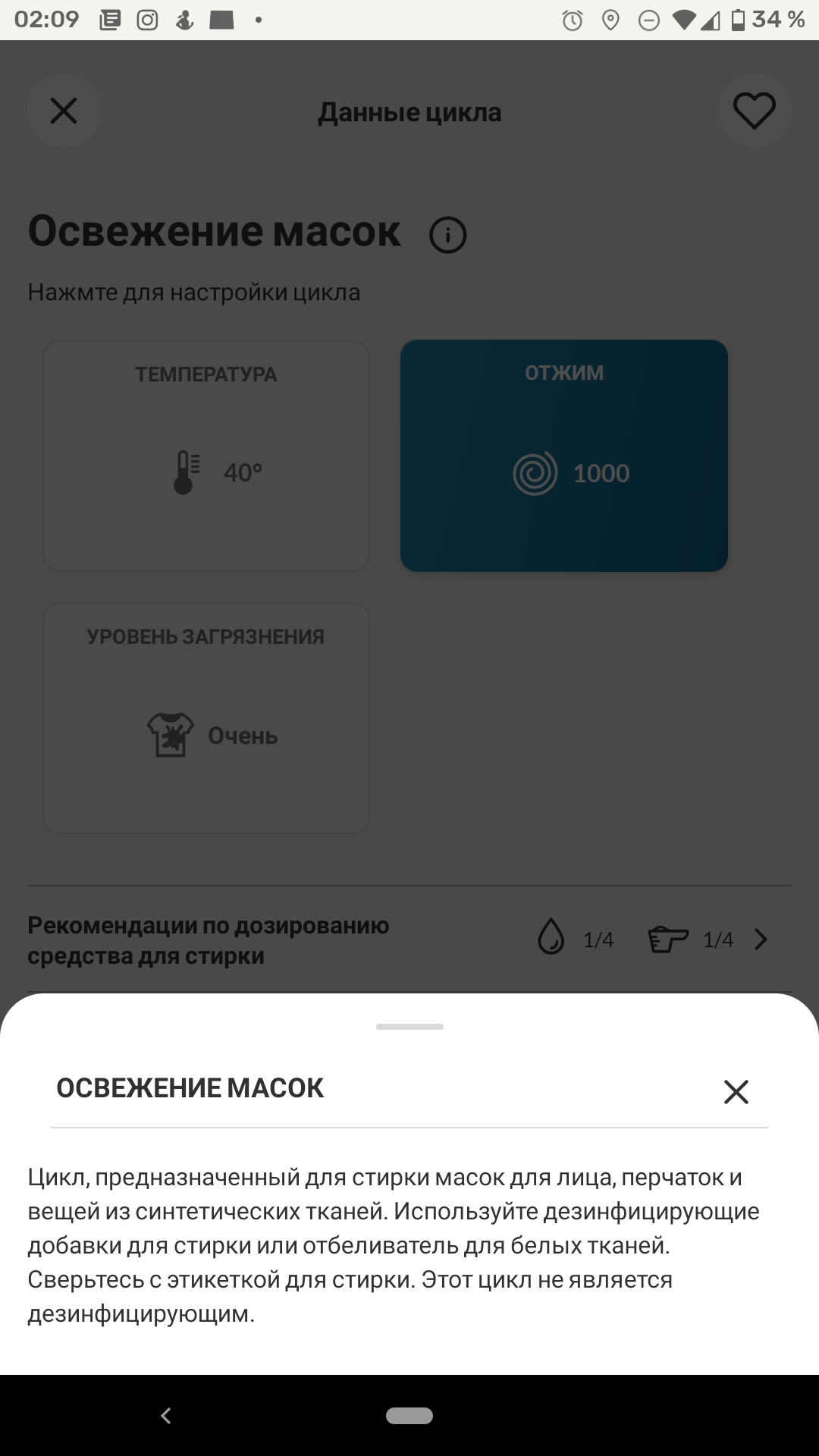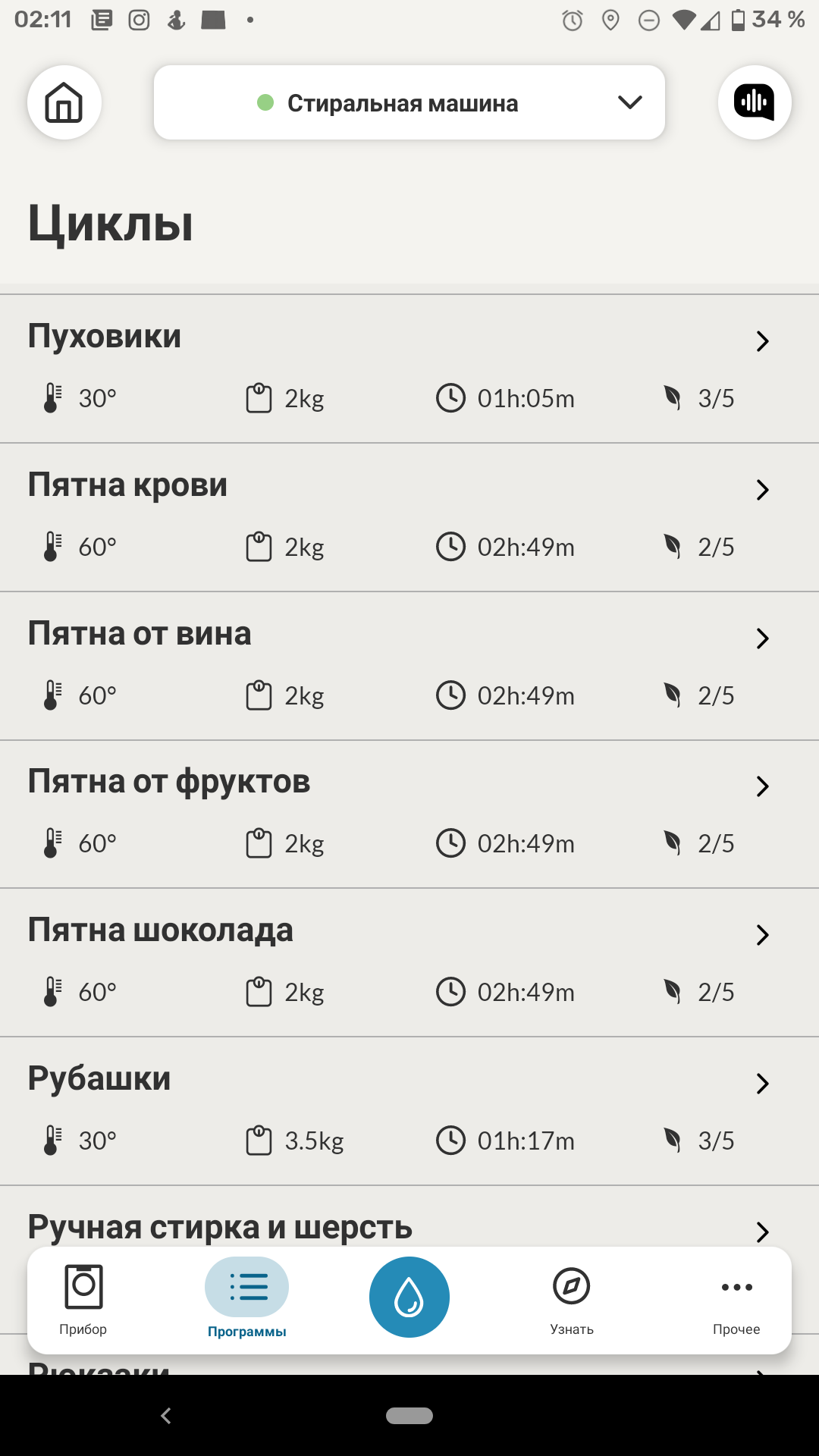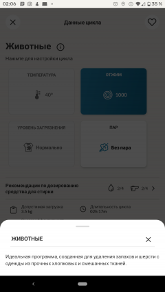 Однако прочитав про программу (каждая из них снабжена коротким описанием), мы успокоились: режим «Животные» предназначен всего лишь для удаления с ткани продуктов жизнедеятельности домашних питомцев.