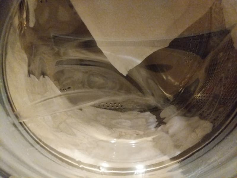 Белье было постирано на программе «Белый хлопок» при температуре 60 °C с предварительной стиркой, результат — на фотографиях ниже.