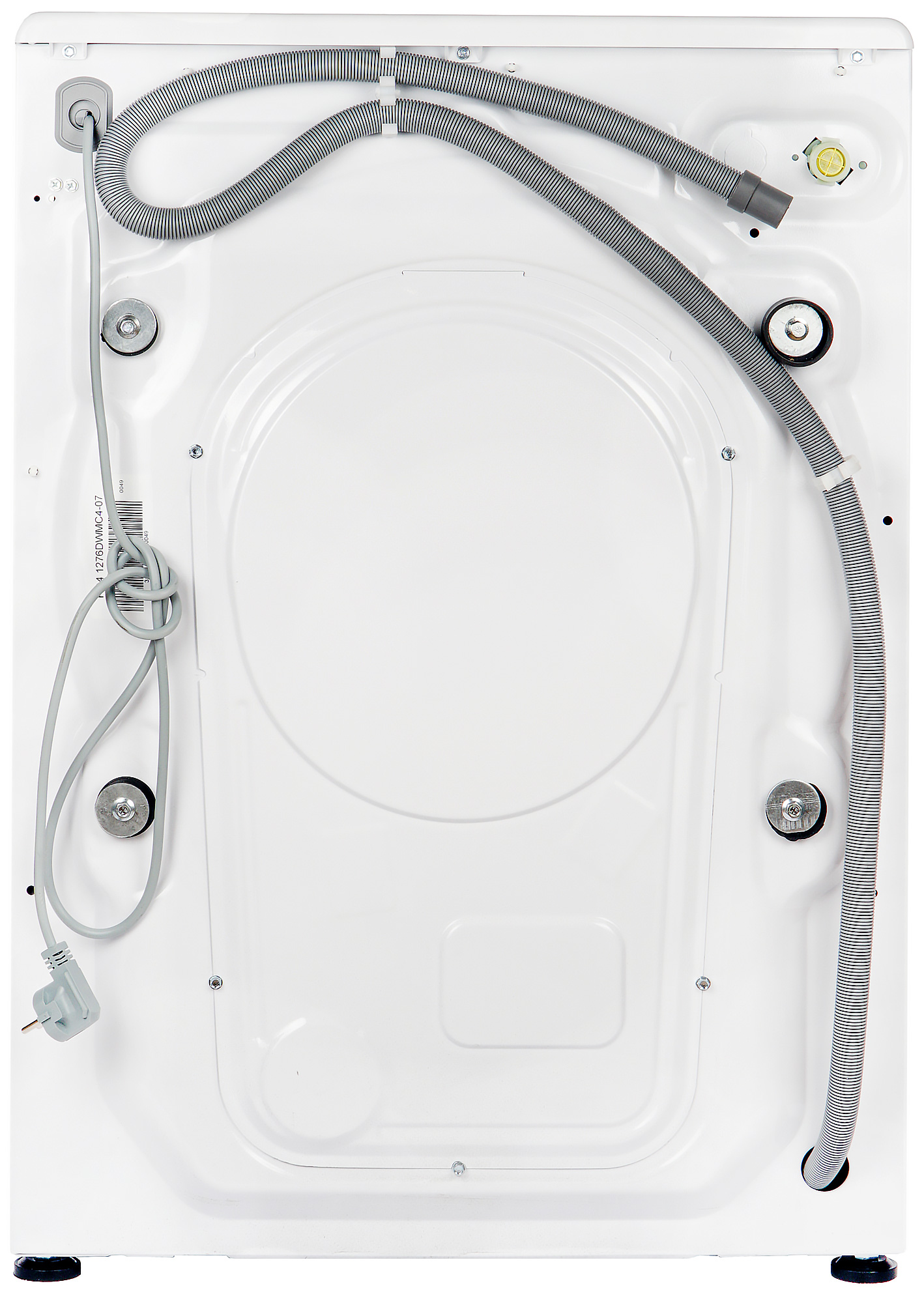 В верхней части металлической задней панели расположена розетка для подключения заливного шланга со съемным пластиковым фильтром, защищающим машину от загрязнений и ржавчины из водопроводной воды. Candy RapidO RO4 1276DWMC4-07 подключается только к холодному водоснабжению.
