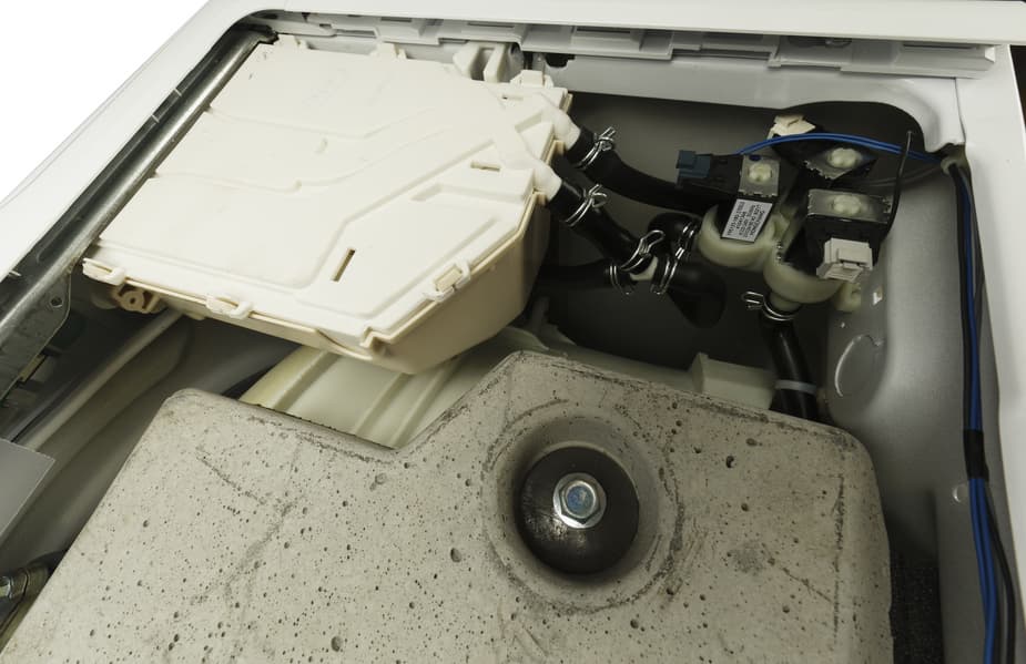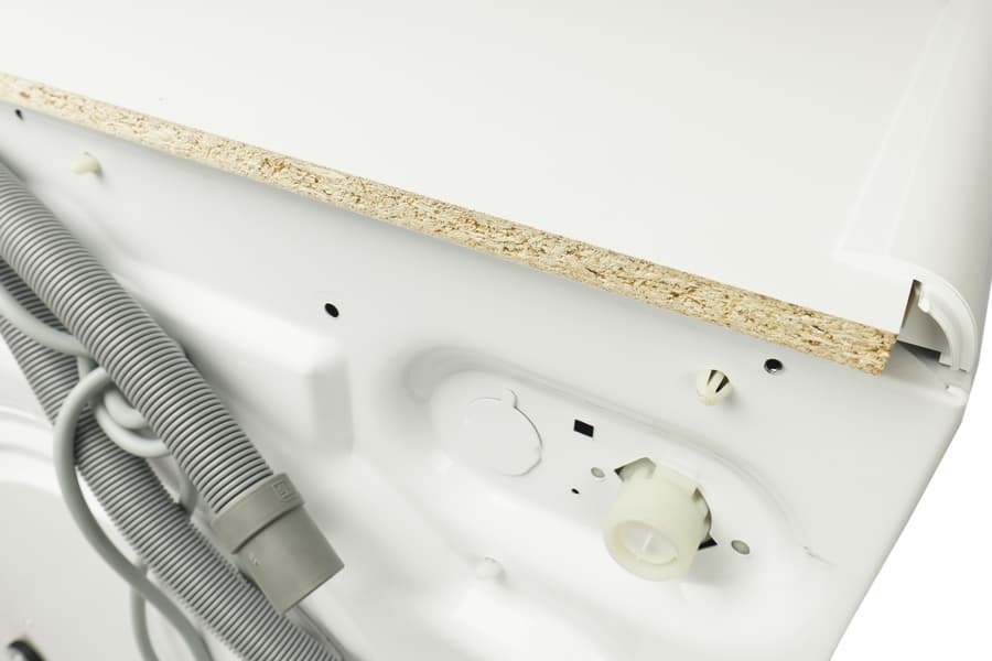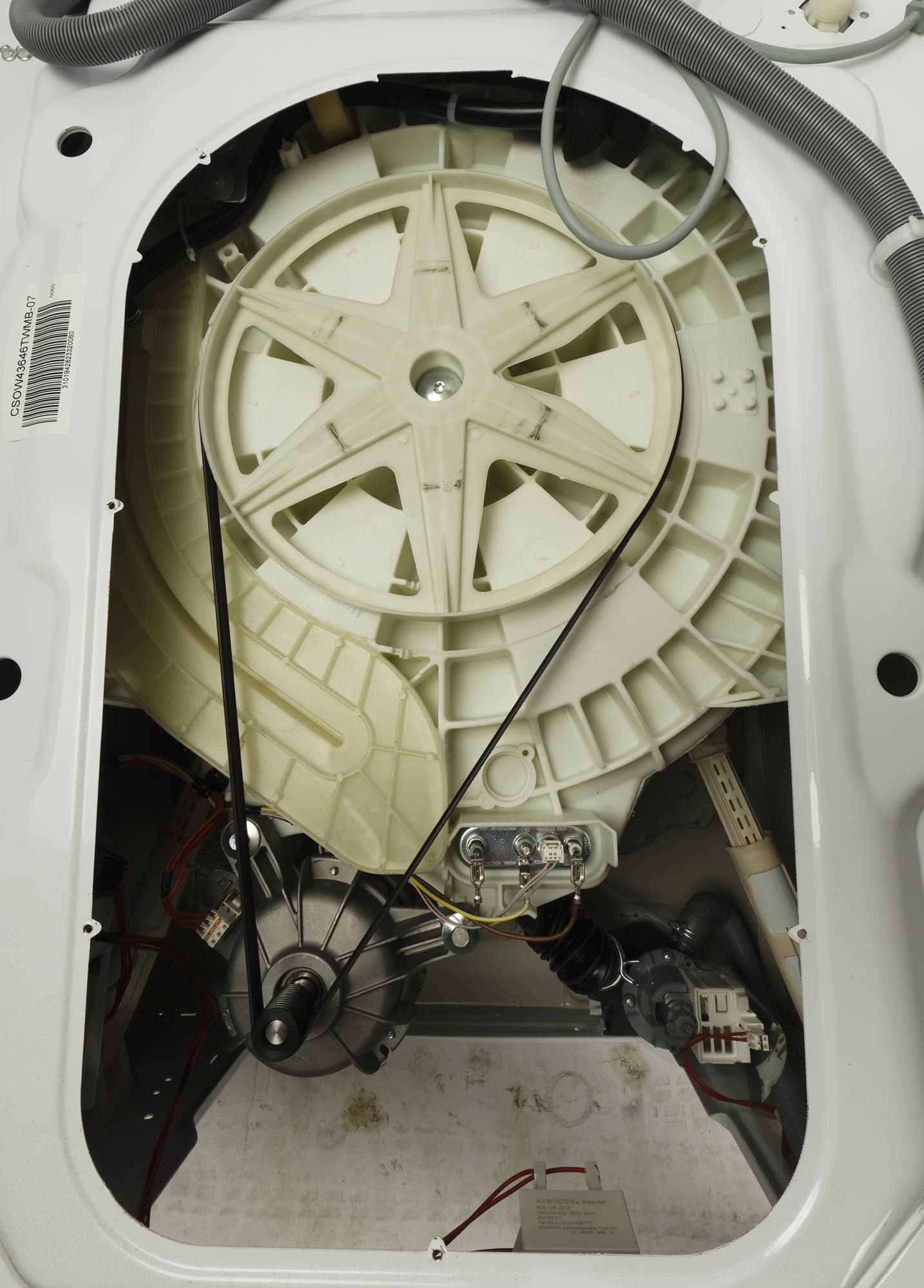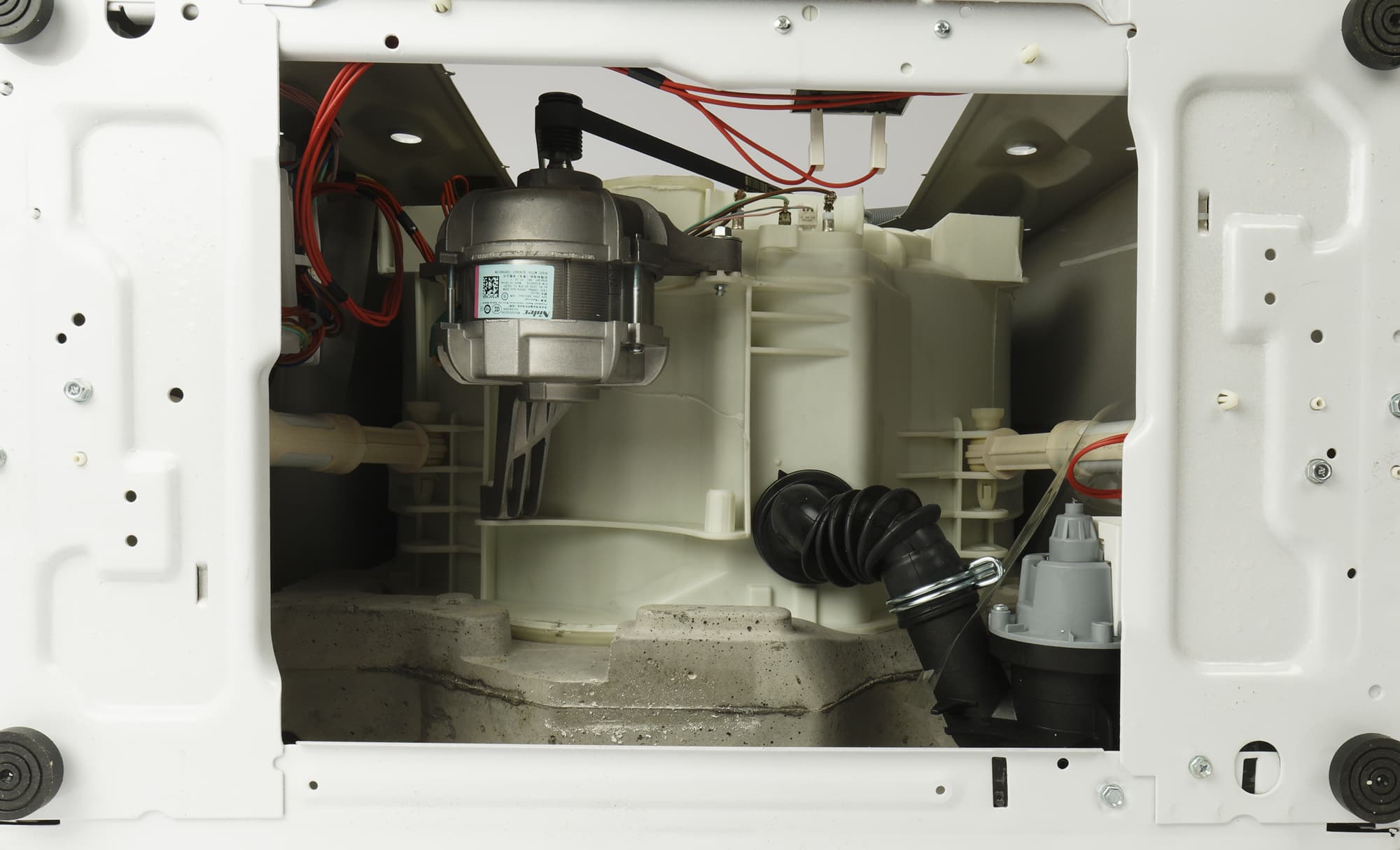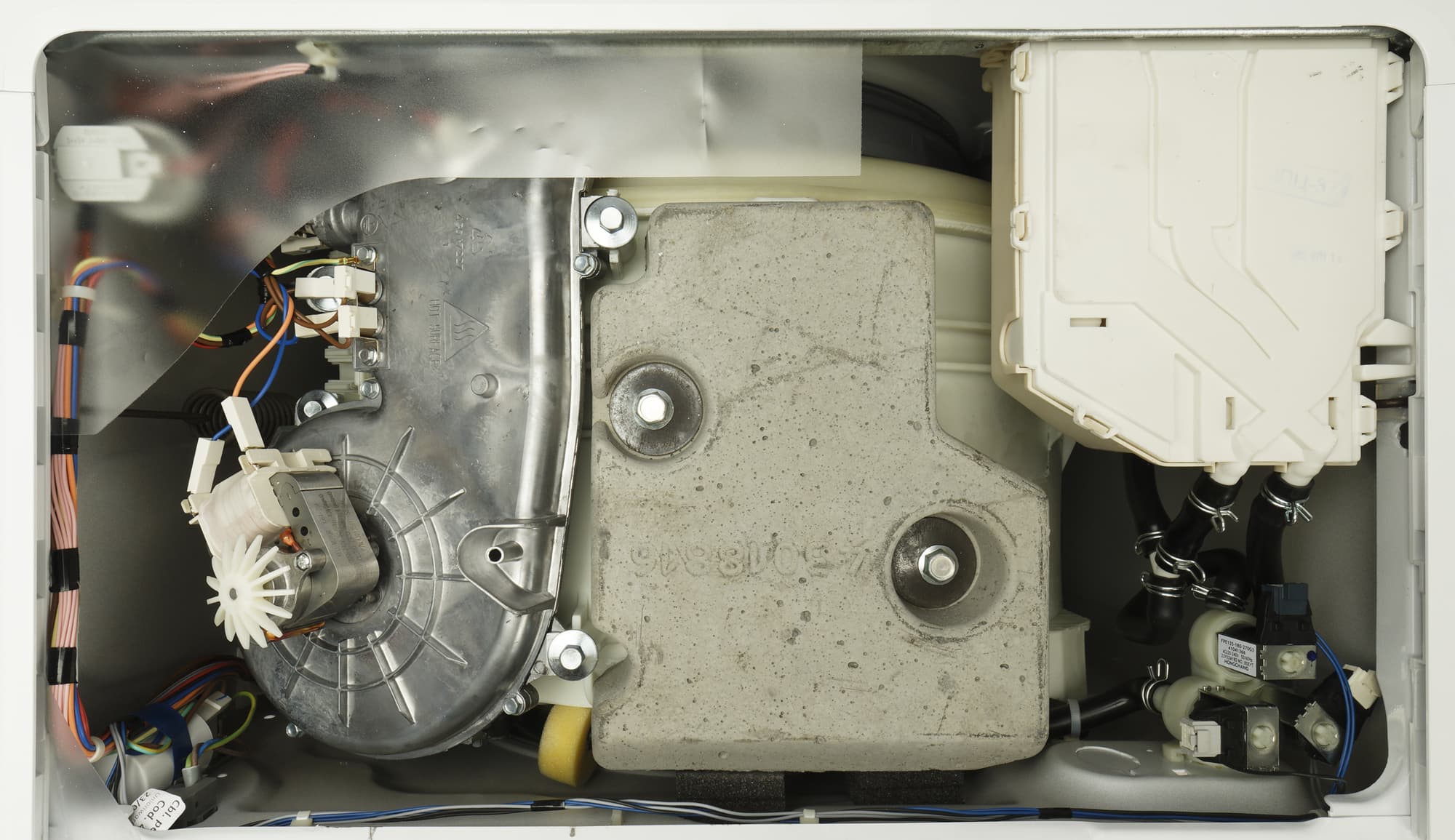 По сложившейся традиции мы производим неполную разборку стиральной машины, снимая верхнюю крышку из ДСП и заднюю панель, и фотографируем ее основные узлы, не комментируя увиденное.