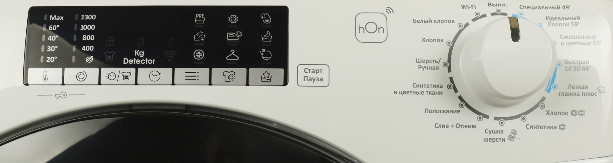 | Программы стирки | hOn (доп. программы в приложении), Деликатная 59′, Смешанные и цветные 59′, Идеальная 59′, Ежедневная 49′, Специальная 49′ (полная загрузка), Белый хлопок, Хлопок + Предварит, Хлопок, Быстрая 44 мин, Быстрая 30 мин, Быстрая 14 мин, Детская одежда, Синтетика и цветные ткани, Джинсы, Ручная (шерсть), Полоскание, Слив + Отжим, Легкая глажка + Пар |