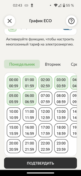 | Отложенный старт | от 1 до 24 часов с шагом 1 час |