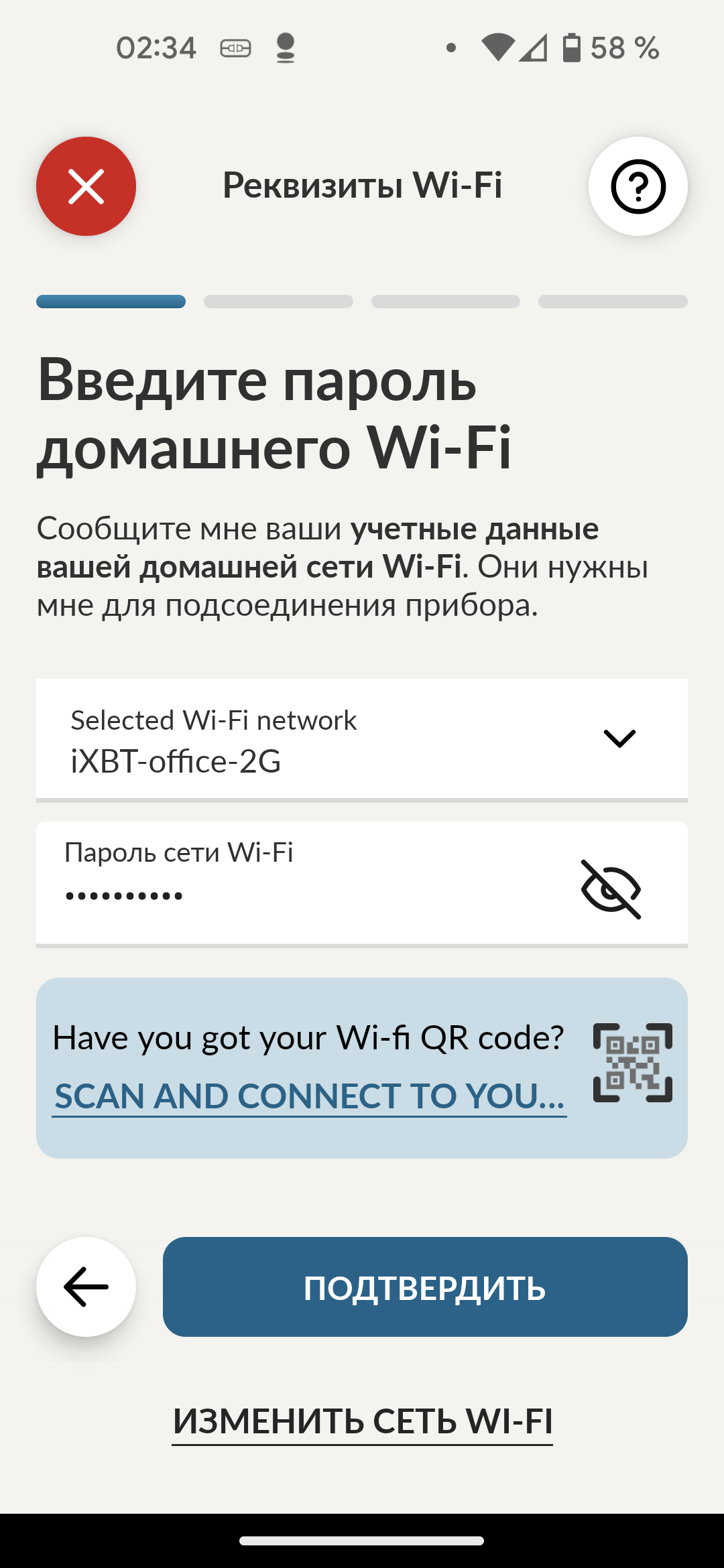 При сканировании QR-кода серийник устройства распознается автоматически. Если вы не позволили приложению использовать камеру, ввести требуемые данные можно и вручную.