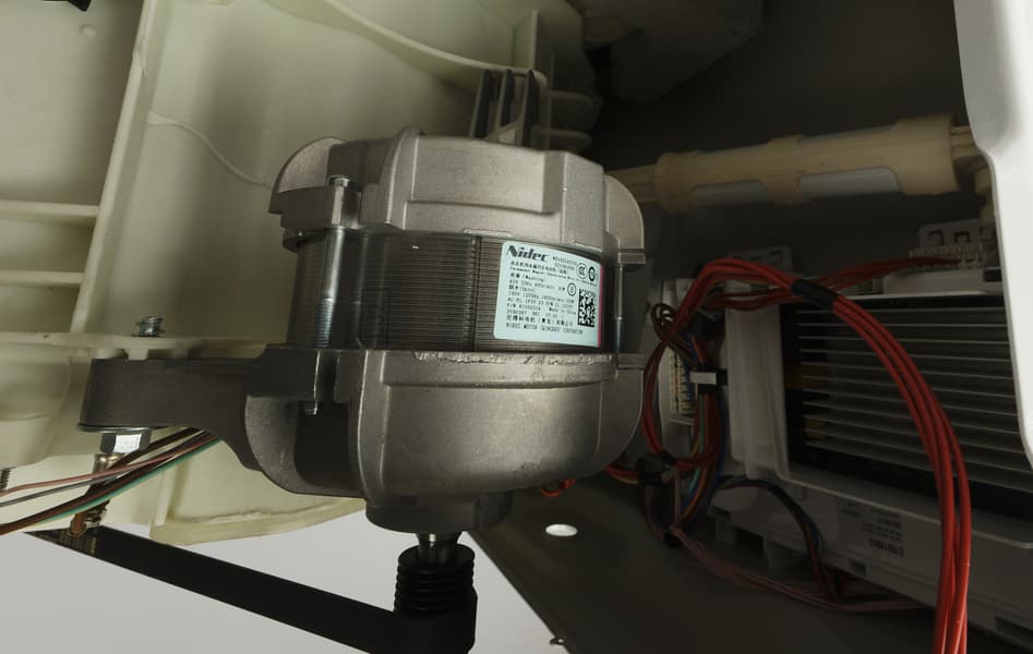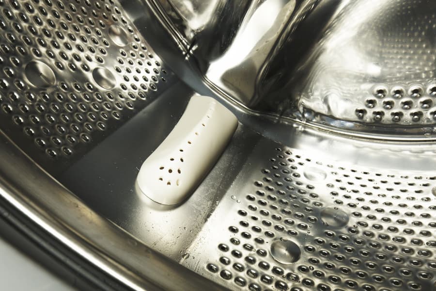 Перфорация на барабане нанесена и по периметру, и на торцевую стенку. Круглые выступы на боковой поверхности служат для улучшения гидродинамики и облегчения перемешивания белья. Пластиковые бойники также с перфорацией и слегка изогнуты — для тех же целей.