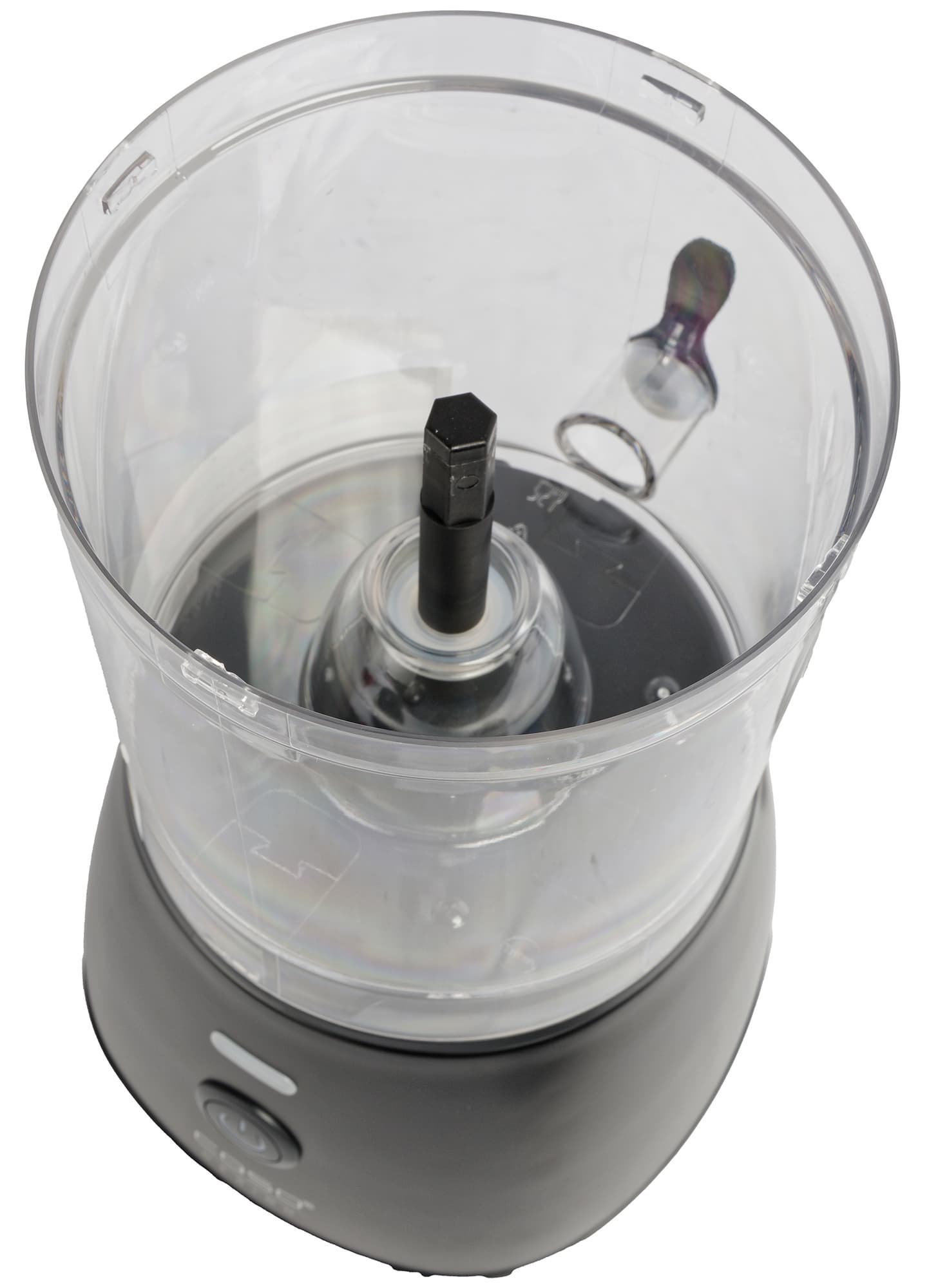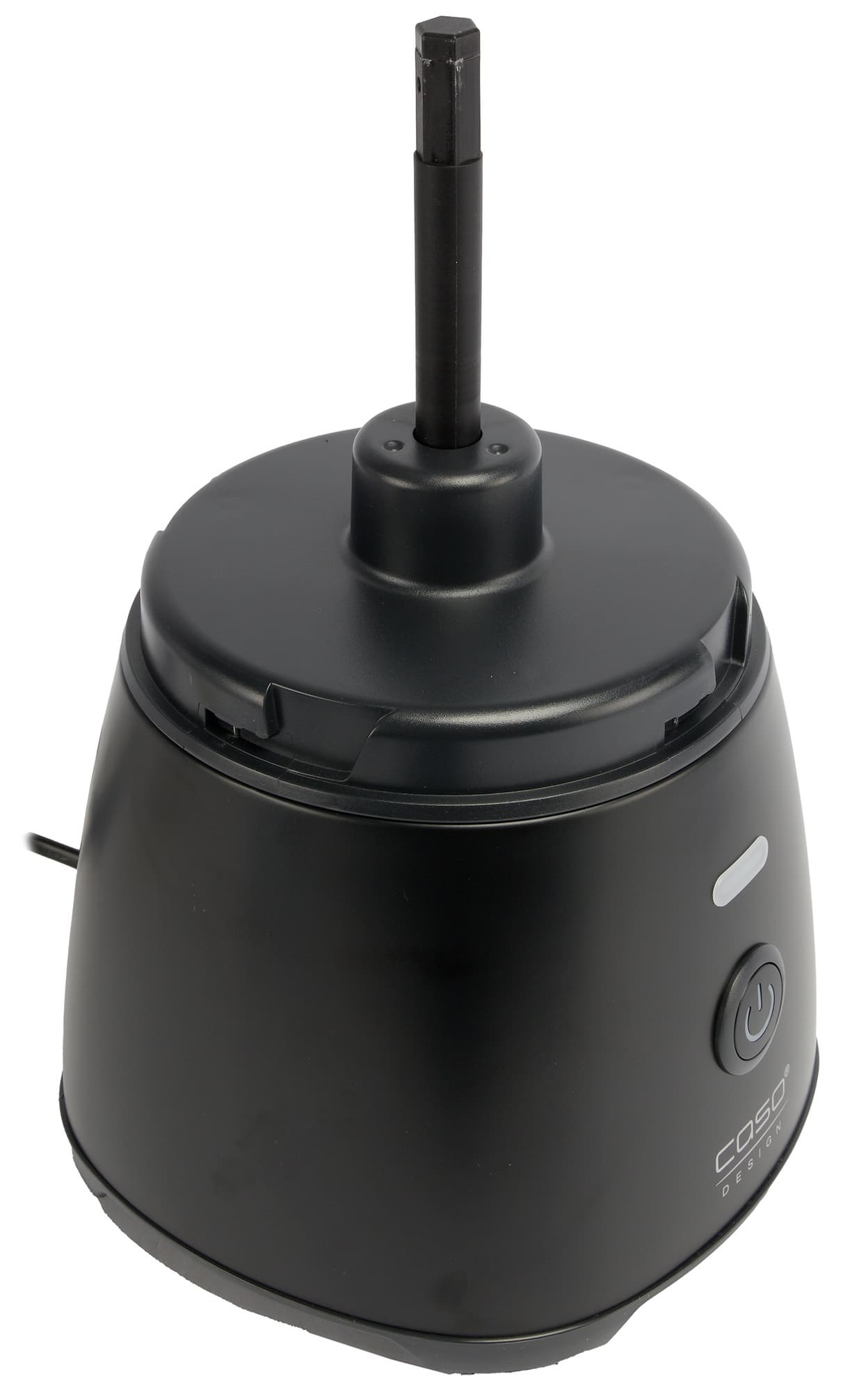 Из верхней части моторного блока выступает подвижный шток: он приводит в действие вращающийся конус, поднимая его и прижимая к крышке. Корпус двигателя сделан из матового пластика. Выбор материала нам кажется удачным: на поверхности не остается следов пальцев и заметных загрязнений.