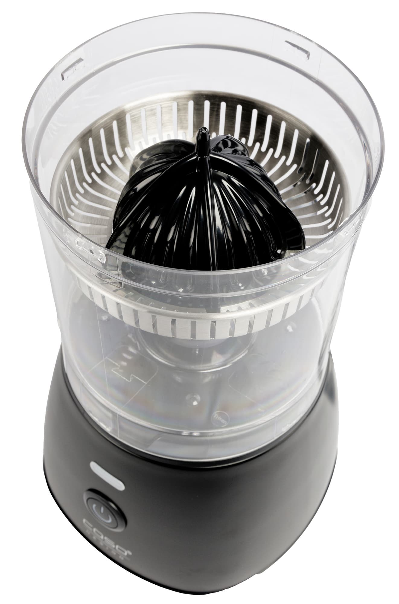Подавляющее большинство соковыжималок для цитрусовых устроено сходным образом: половинки плодов нужно прижимать к вращающемуся конусу вручную. А вот в конструкции соковыжималки Caso CP 400 Lift применяется полуавтоматическая система: от пользователя требуется только разместить половинку плода на конусе и нажать на кнопку, а всё остальное устройство сделает само.