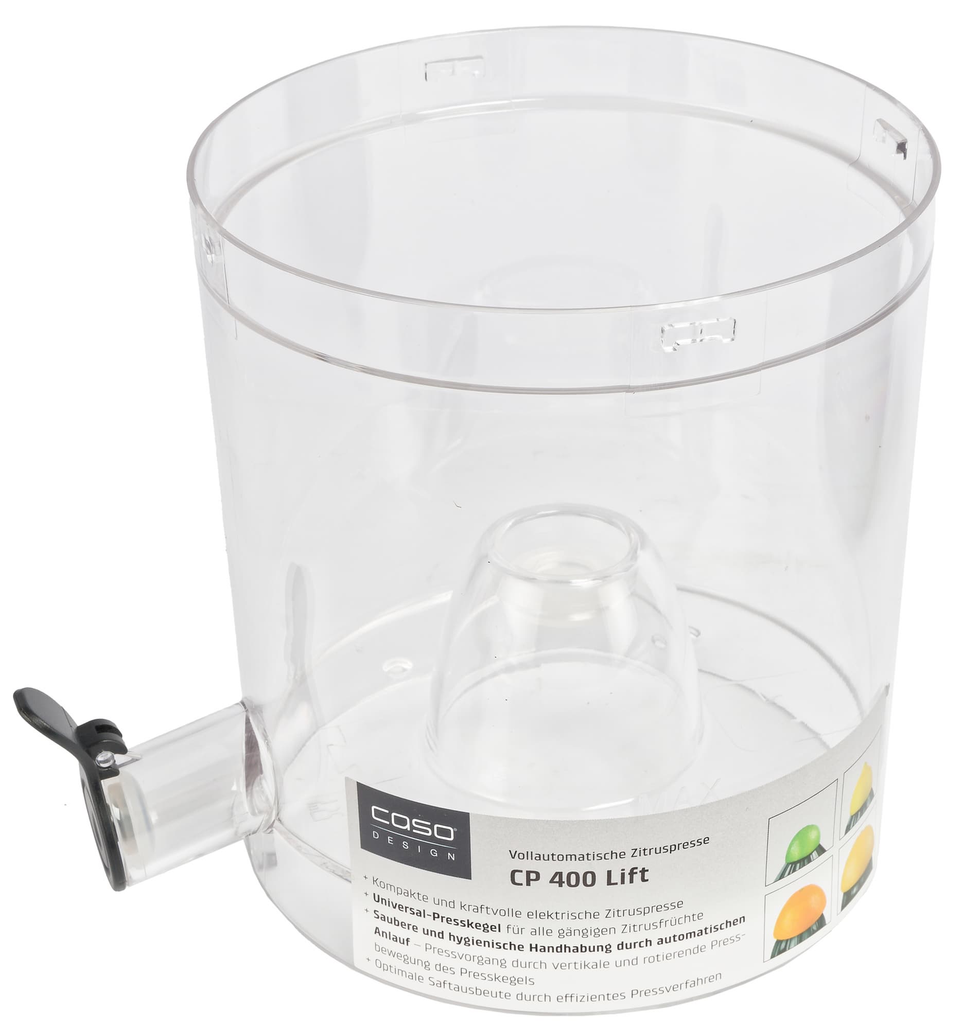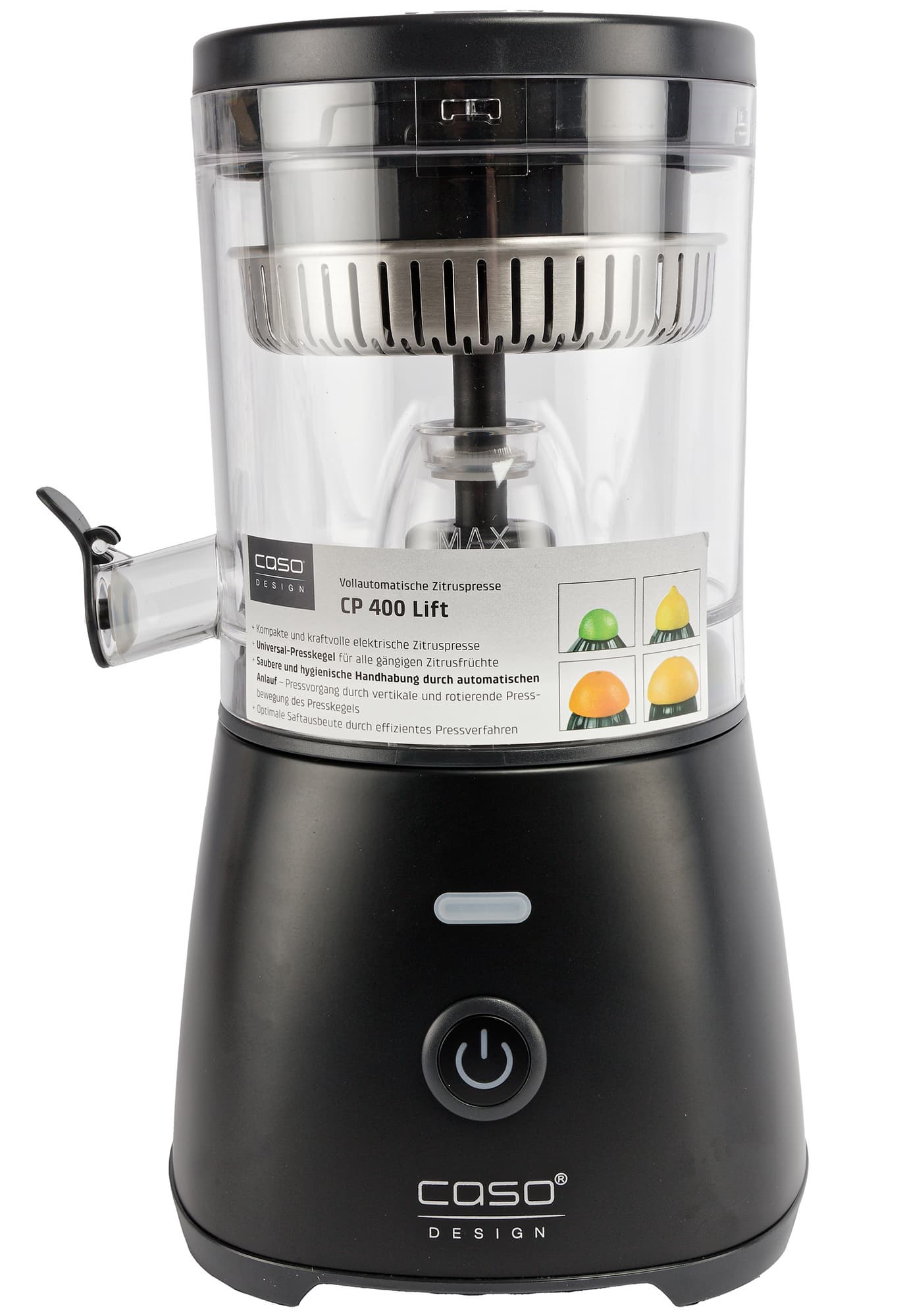 Соковыжималка Caso CP 400 Lift позволяет работать с цитрусовыми любых размеров — от мелких лаймов и мандаринов до крупных грейпфрутов. Автоматически поднимающийся конус обеспечивает равномерный отжим плодов и отличную эффективность.