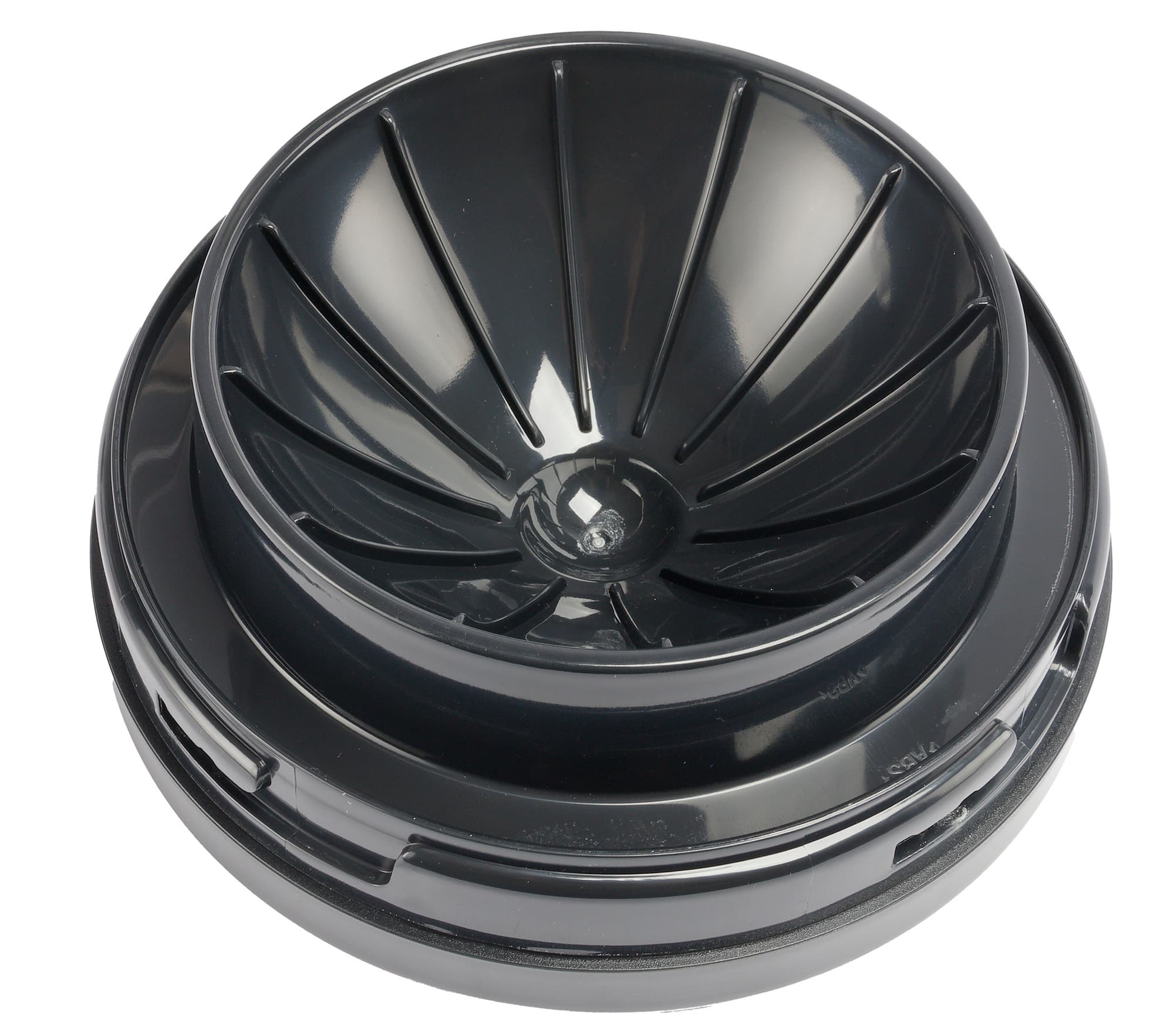 Крышка фиксируется на конструкции поворотом приблизительно на 20°. На ее внутренней стороне предусмотрено углубление для половинок плодов. На фотографии хорошо видны ребра, препятствующие повороту при отжиме.