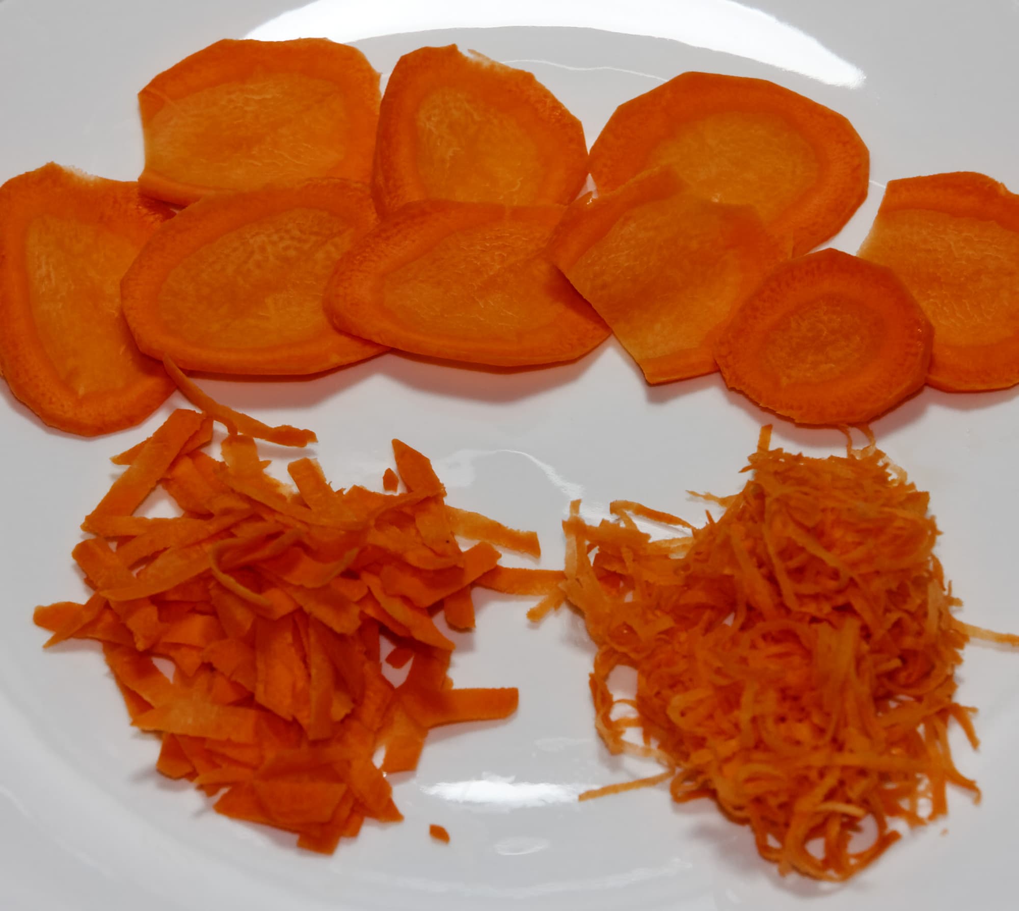 С морковью мультирезка отлично справилась во всех трех случаях — со всеми тремя барабанами-терками. У нас получились равномерно нарезанные/натертые кусочки моркови.