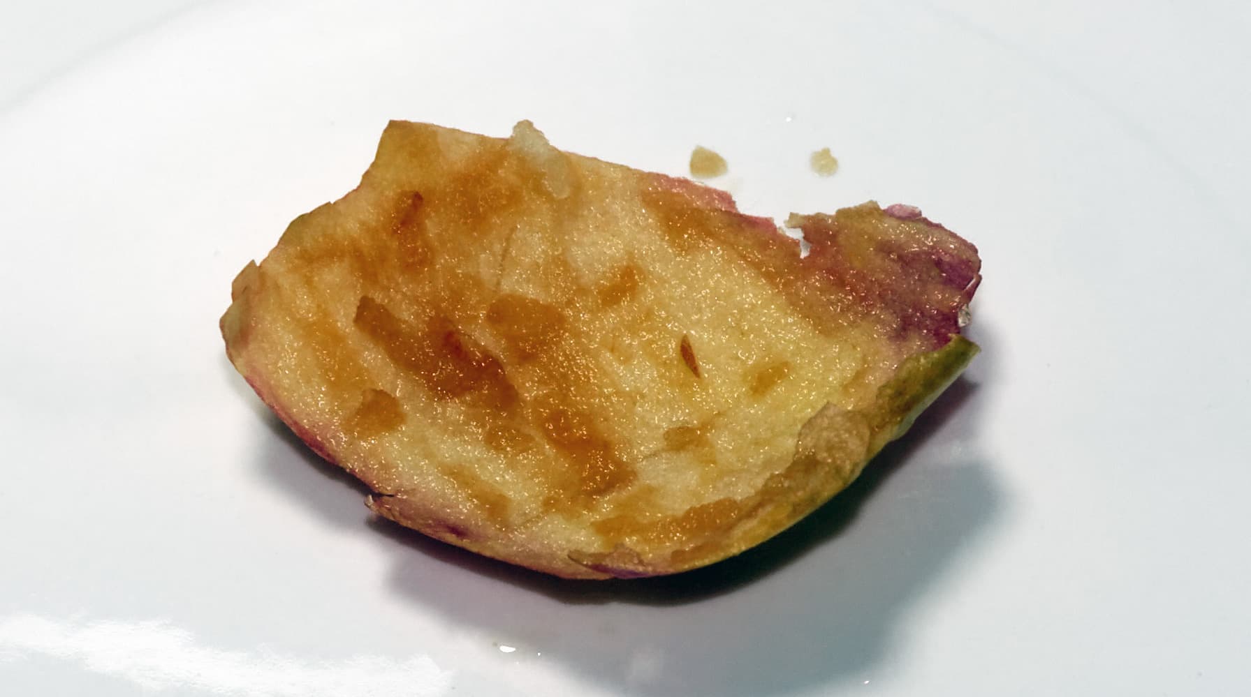 С яблоками, нарезанными на четвертинки, терка справилась посредственно: на самой мелкой терке из мультирезки просто потек яблочный сок. Сменив насадки на более крупные, мы смогли добиться приемлемого результата, однако количество отходов все равно оказалось довольно велико.