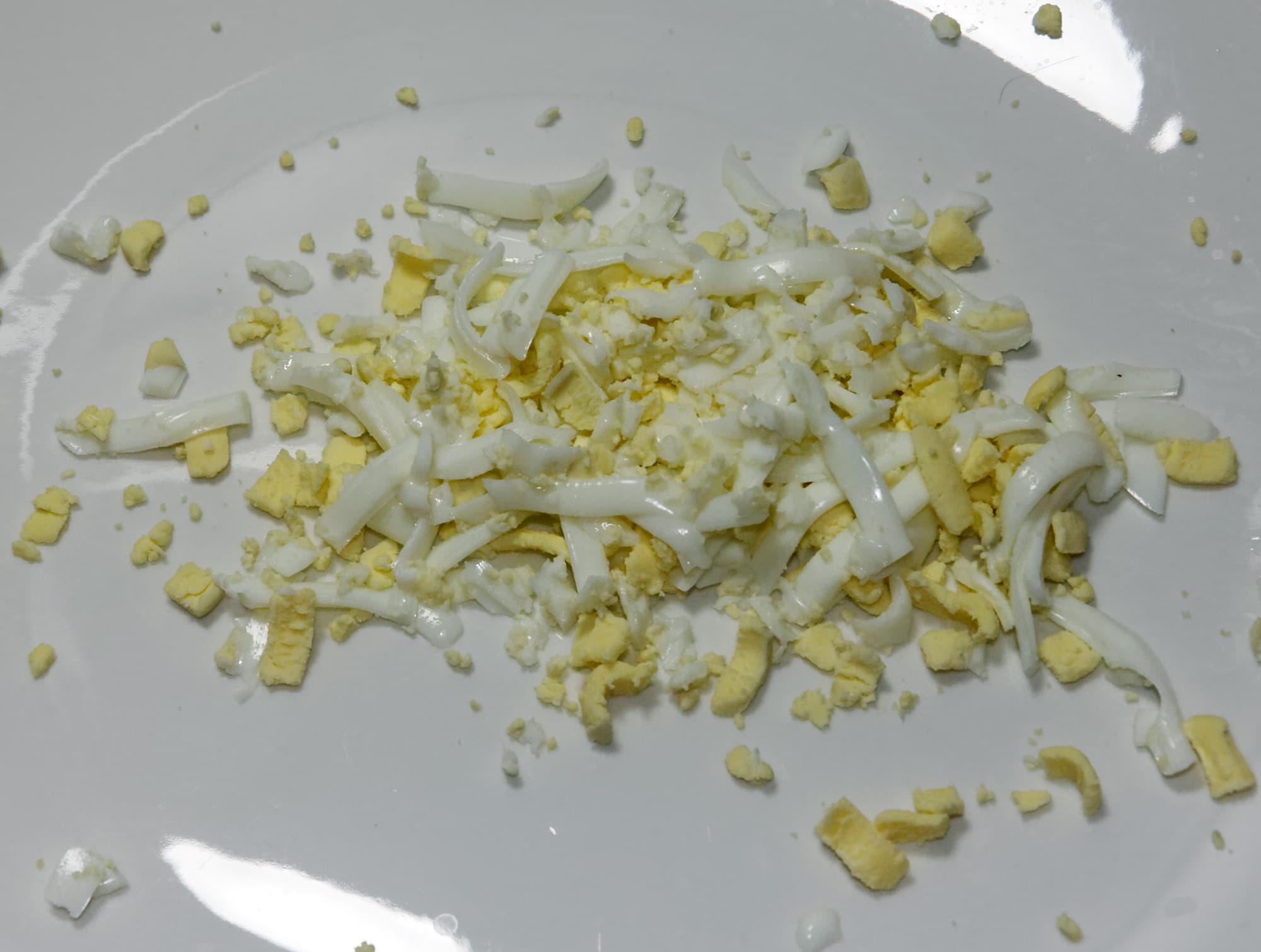 С помощью мультирезки можно без труда натереть вареные яйца (например, для салата). Мы воспользовались средней насадкой, которая идеально подошла для измельчения яиц. Отходов в этот раз практически не было.