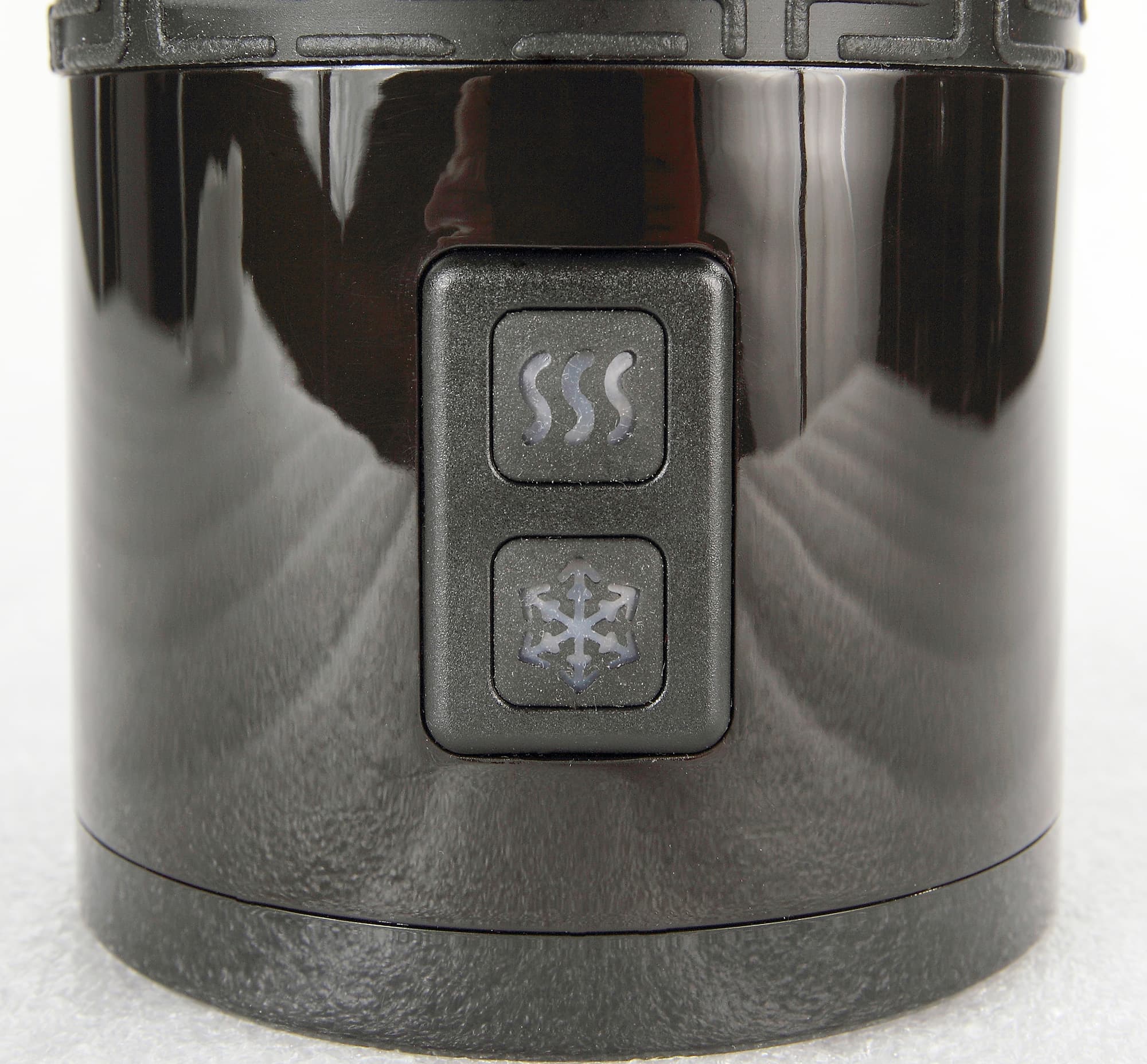 У прибора две кнопки: горячая пена и холодная пена. В зависимости от желаемого результата, пользователь нажимает либо верхнюю, либо нижнюю клавишу. В кнопки встроены фигурные световые индикаторы: красный в виде струек горячего пара на верхней кнопке и синий в виде снежинки на нижней. Во время работы индикаторы горят ровным светом, при отключении несколько раз мигают, затем гаснут. Кроме того, устройство может просто подогреть молоко. Для этого нужно венчик для взбивания заменить на венчик для подогрева.