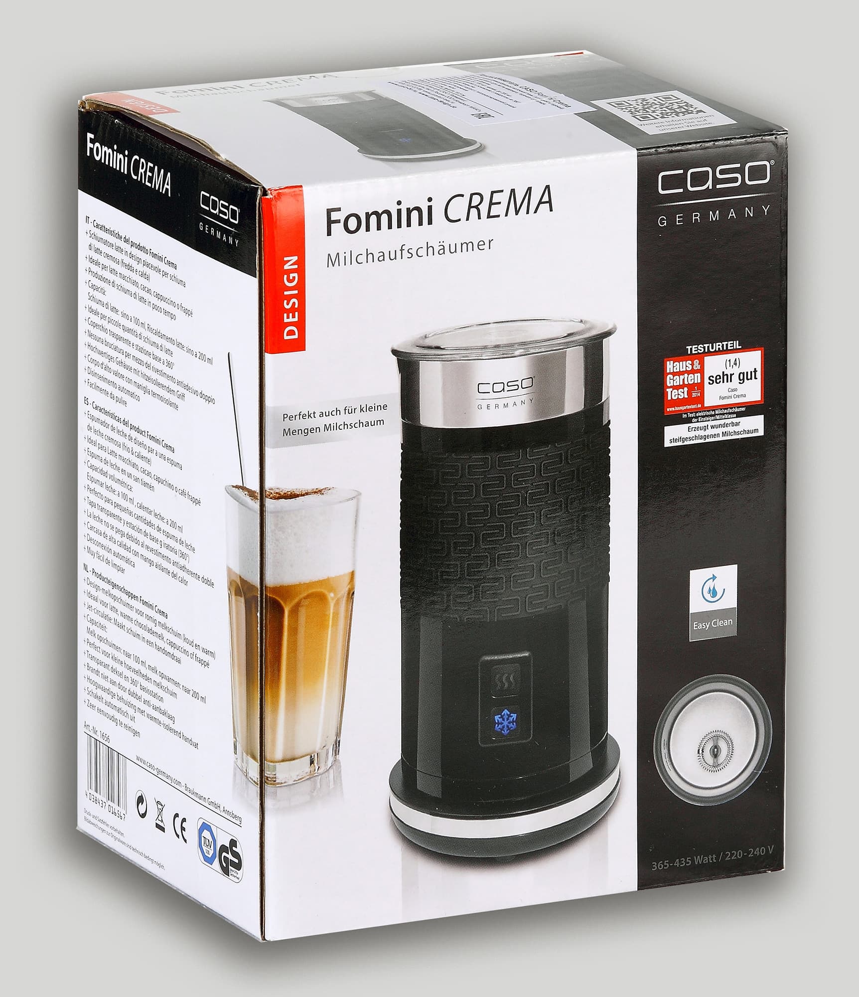 Первый: Caso Fomini Crema — весьма забавный прибор, позволяющий получить внушительное количество холодной или горячей молочной пены. Если вы действительно любите напитки с молочной пеной, то устройство вас порадует. В отличие от капучинатора кофемашины, к нему не надо специальным образом приноравливаться и набивать руку: просто заливаете молоко в кувшин и нажимаете кнопку. Простая бытовая магия.