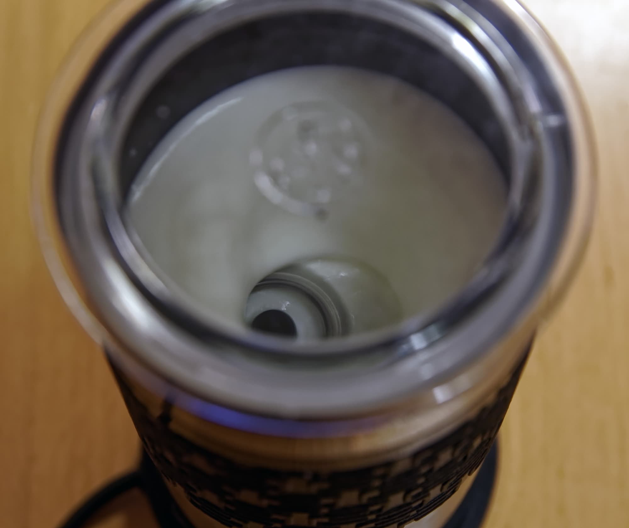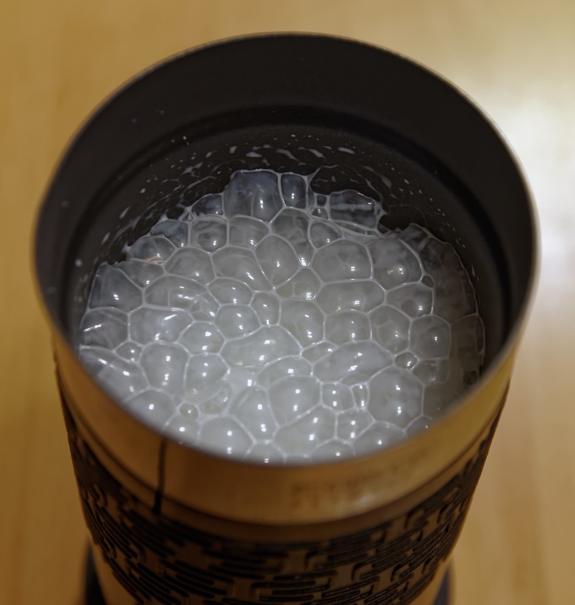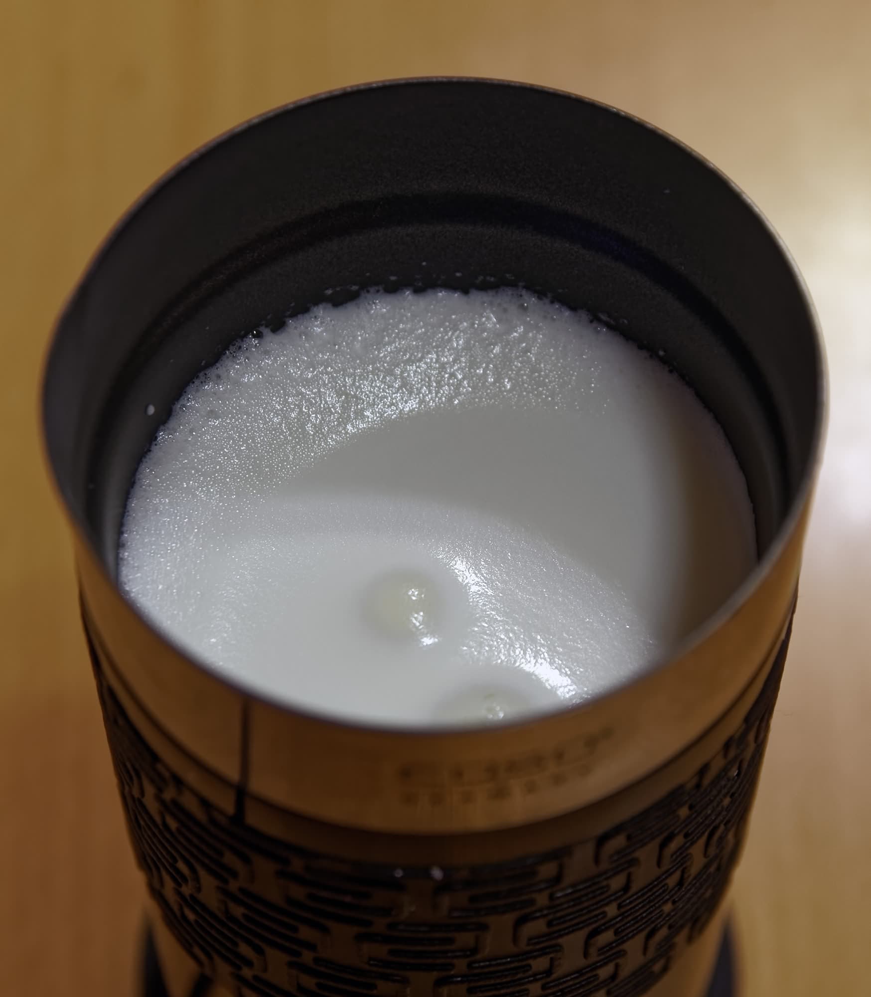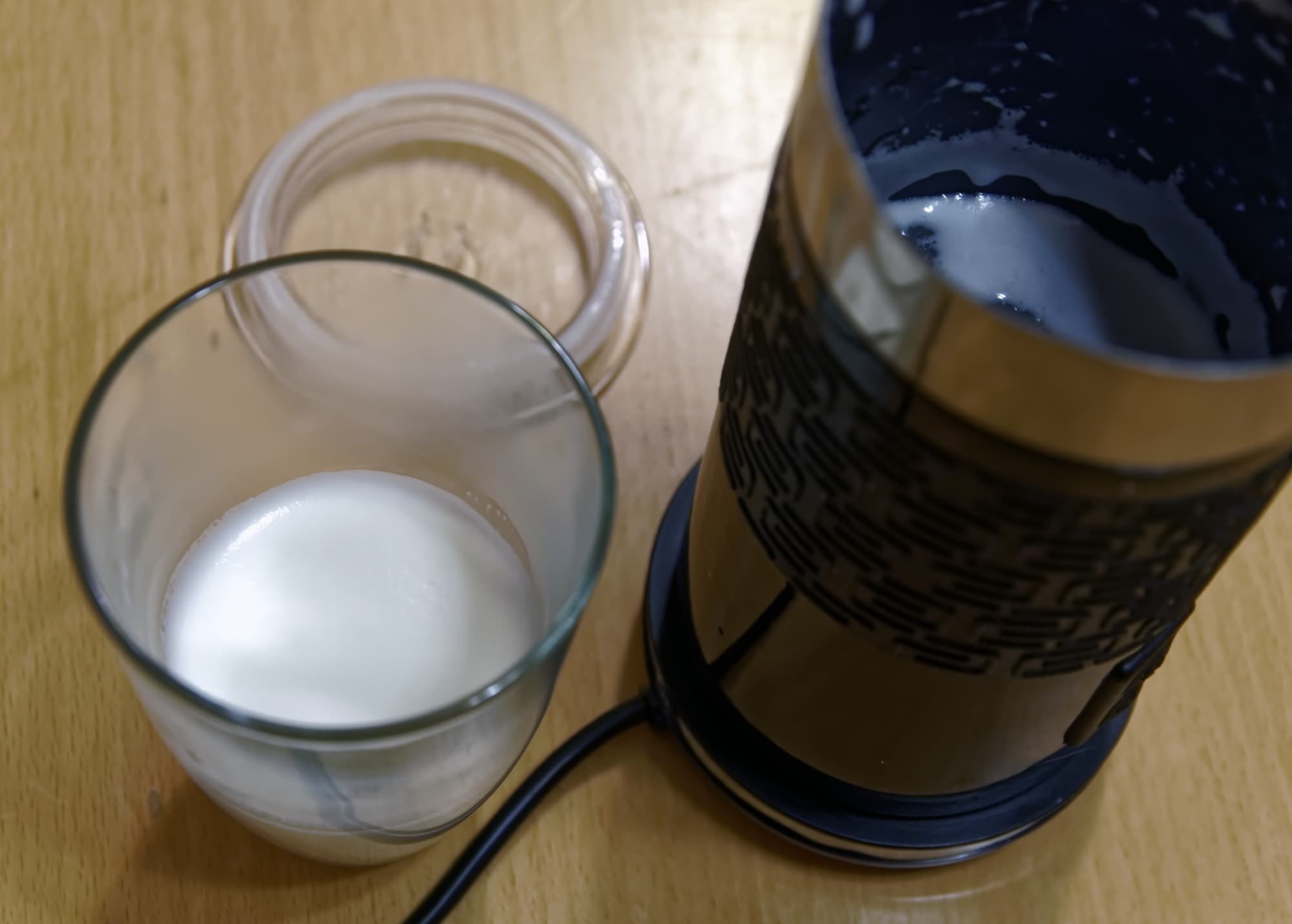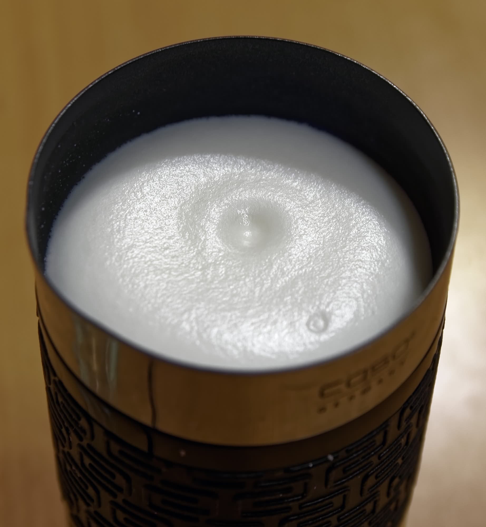...Которого не случилось. Вместо горячей пены мы увидели обычное молоко плюс несколько больших пузырей сверху.