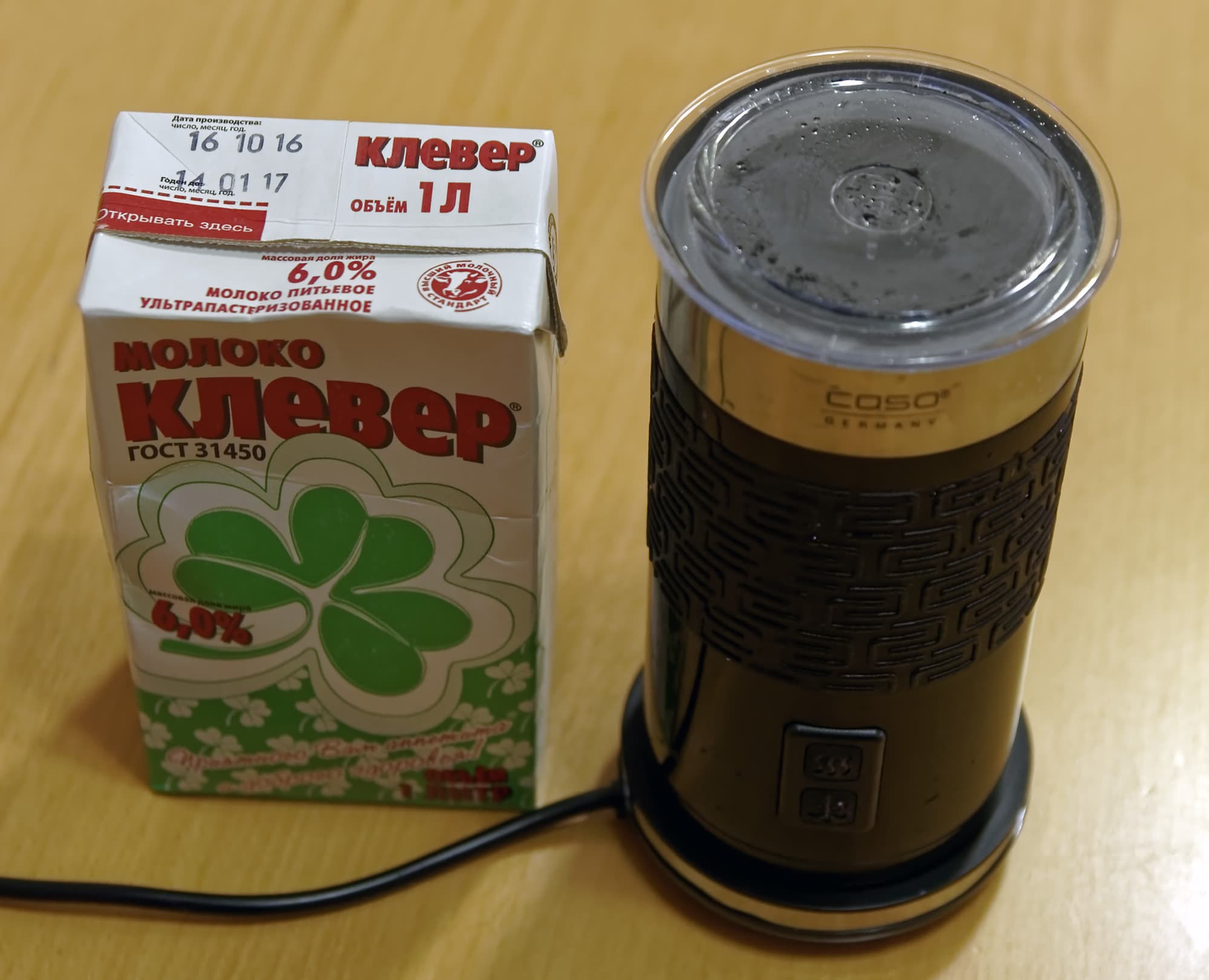 В немецком офисе Caso заинтересовались результатами наших экспериментов и решили попробовать «отстоять честь» 1,5% молока. Судя по присланным фотографиям, все получилось практически идеально.