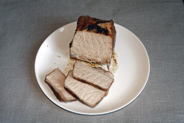 Результат — идеально. Мясо получилось вкусным и сочным — отлично подходит как в качестве самостоятельного блюда, так, например, и для приготовления бутербродов. В качестве эксперимента второй кусок готовился в су-виде при 65 градусах. Мясо оказалось несколько менее сочным, более похожее на буженину (впрочем, степень «прожарки» — исключительно дело вкуса).