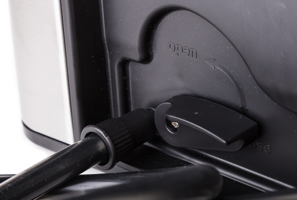 Вакуумный присос состоит из шланга, присоски и разборного контейнера, который предотвратит попадание влаги в насос. Для хранения присоса на передней панели предусмотрен специальный отсек, закрывающийся на защелкивающуюся крышку.