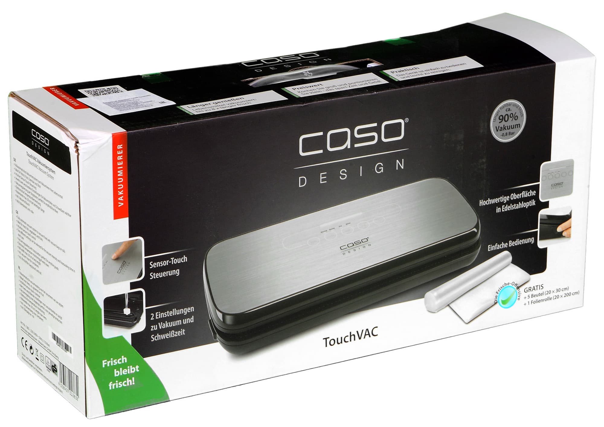 Caso TouchVac является примером именно такого прибора: этот вакууматор отличается не только оригинальным дизайном, но и наличием сенсорных кнопок, а также светодиодной подсветки, включающейся в процессе работы прибора.