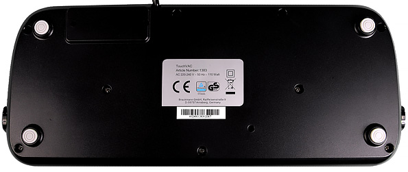 На этой панели расположен логотип Caso, пять сенсорных кнопок, имеющих встроенную подсветку, индикаторы выбора режима, а также большой горизонтальный индикатор работы. Единственное, что нас смутило: разные цвета подсветки. Индикаторы режимов и кнопки подсвечиваются белым цветом, а индикатор работы, имитирующий «прогресс бар» подсвечивается ярко синим цветом, который, на наш взгляд, совершенно неуместен в черно-сером дизайне прибора и выбивается из общего ряда. Впрочем, на этом наши претензии к внешнему виду устройства заканчиваются.