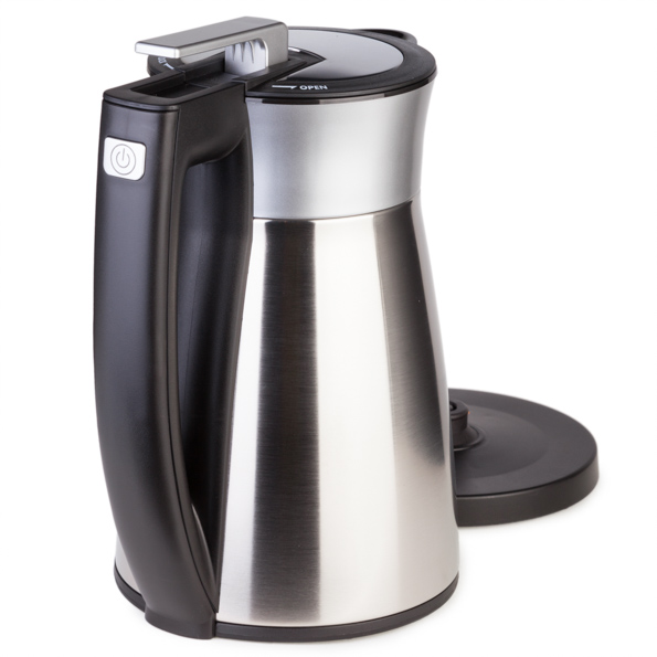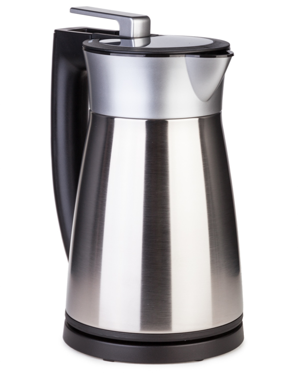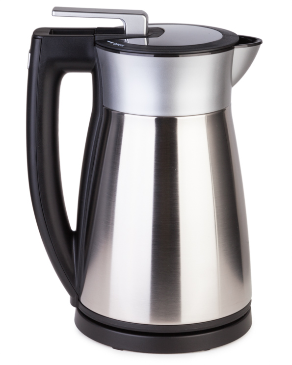 В остальном он представляет собой обычный хороший чайник: форма, эргономика органов управления, удобство наливания воды — ничто не вызвало у нас нареканий. Дополнительное удобство: об него невозможно обжечься — даже когда внутри кипяток, температура корпуса снаружи составляет максимум 35 °C.